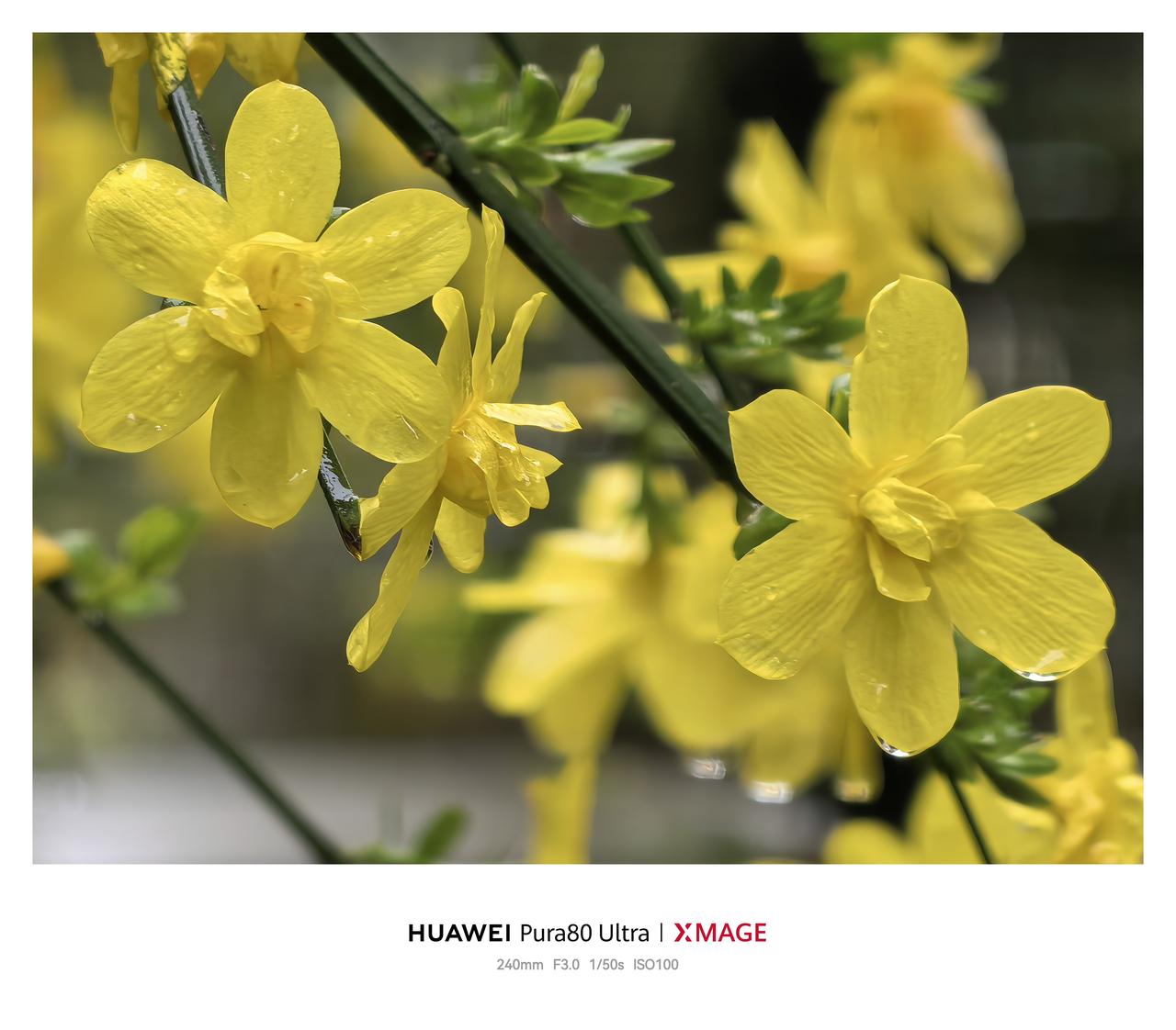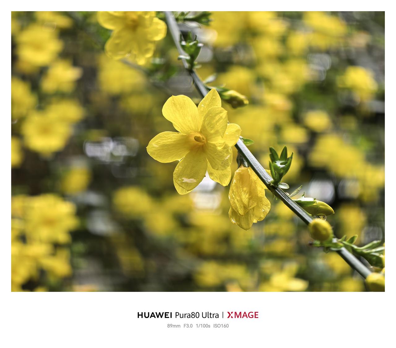 华为Pura 80 Ultra手机里的春色:迎春花 华为Pura 80 Ultra手机,摄影能力真不错,捕捉雨中迎春花的娇艳。雨滴轻轻滑落花瓣,晶莹剔透,更映得花朵娇艳欲滴。每一张照片,都是对春天的赞歌,展现生命的蓬勃与美好。分享一张你最近随拍的照片 手机每天随手拍 晒图笔记大赛