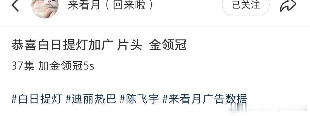 陈飞宇白日提灯陈飞宇《白日提灯》超点后加广,37集片头加广,在播剧里唯一全集有广。 恭喜 陈飞宇白日提灯