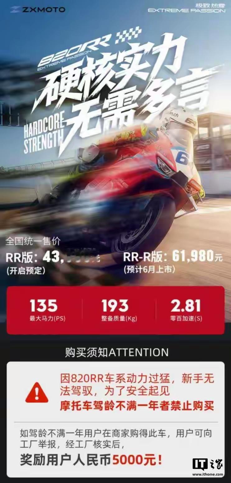 张雪机车:“禁止驾龄不满一年的新手购买张雪机车,我希望少死几个人!” 话虽然难听,但却是最忠实的忠告。 张雪机车这样大排量的性能猛兽,真不是一般人能驾驭的,特别是新手。 这几天,随着张雪机车在WSBK上两夺分段冠军,热度直接拉满。 不少人已经开始下单张雪的820RR这辆冠军车,一些早些预定的,已经开始交付。 张雪这时候站出来说这些,其实也是为了大家好,毕竟生命只有一次。 这样的性能猛兽,稍微一个不注意,有可能车毁人亡。 不仅如此,张雪机车方面还表示,已经向经销商说明了,禁止出售车辆给新手,违反的会被罚款。 也开通举报通道,奖励5000元。 不得不说,在这个销量为王的时代,张雪显得格格不入,或许正是因为他的这种坚持,才能在两年内,让张雪机车崛起。