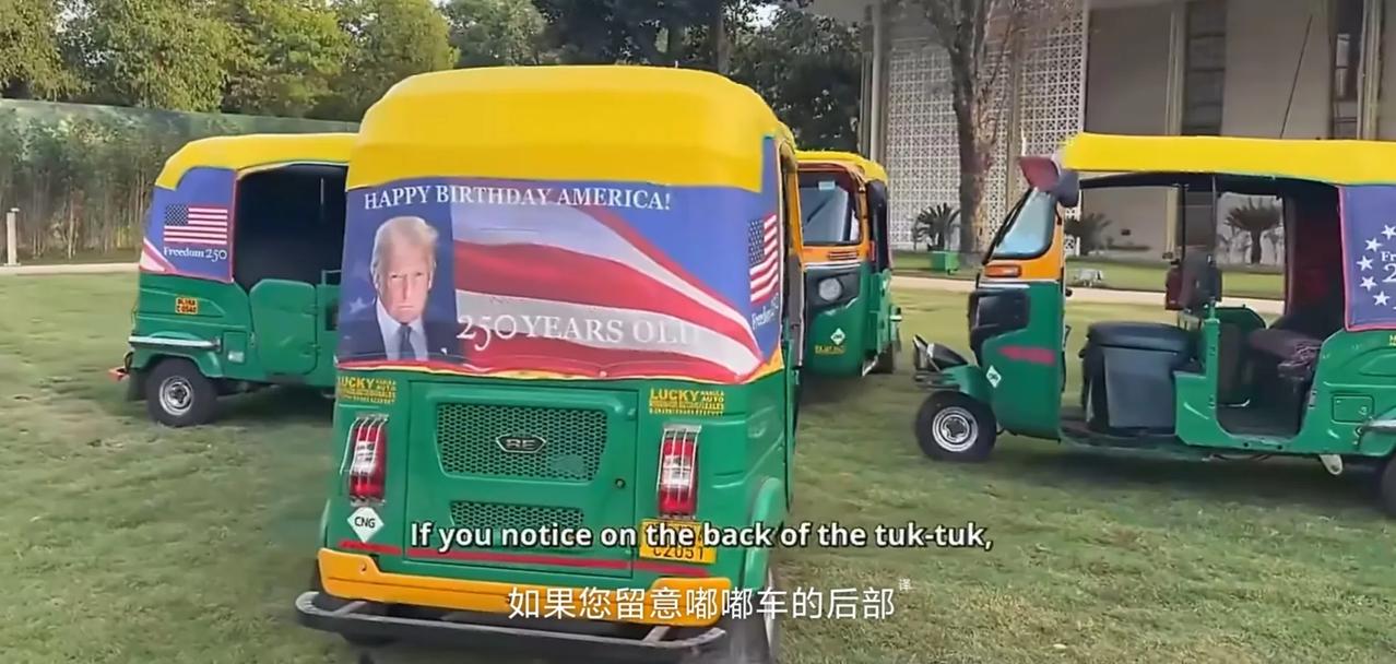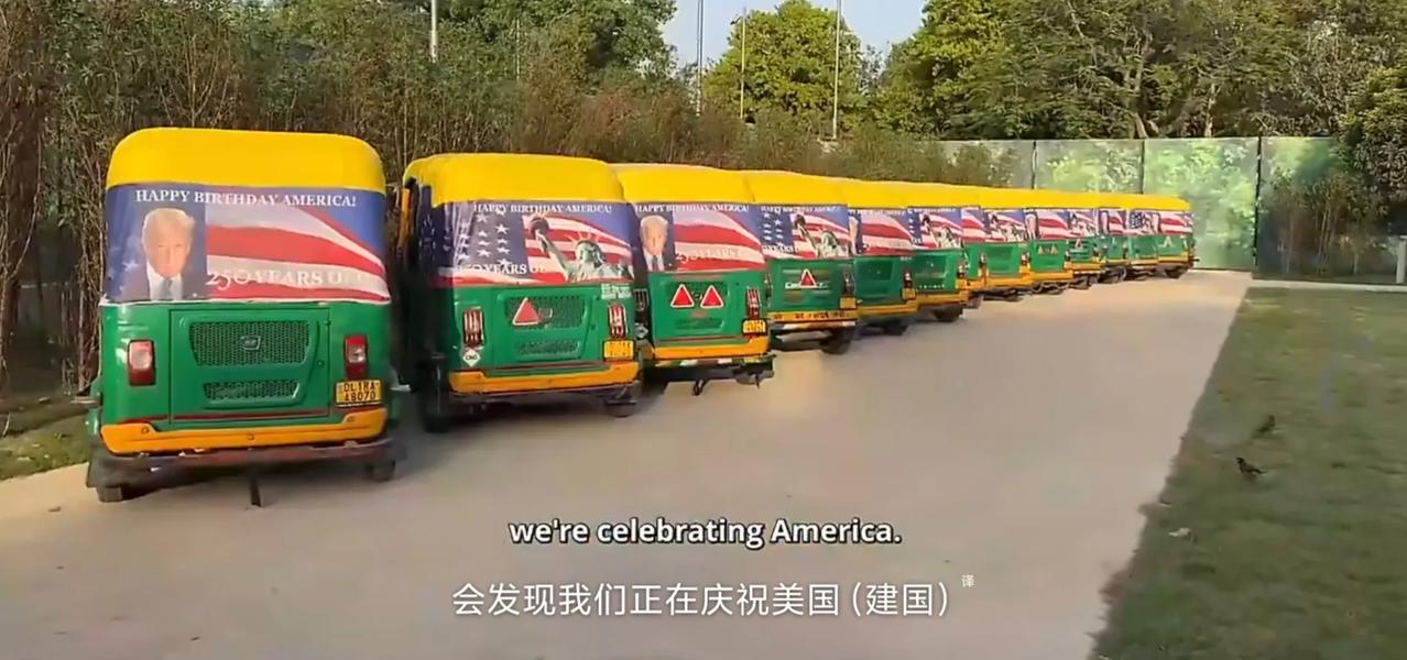 “太抽象了[捂脸]”美国向印度赠送了12辆印有懂王头像和美国国旗的三蹦子,以此庆祝美国建国250周年。 美国还是挺了解印度,给了印度最实用的交通工具 4月15日,新任美国驻印度大使Sergio Gor在新德里高调启动“自由250”。 没多久,街头就冒出12辆特别显眼的三蹦子,车身贴着特朗普头像、美国国旗、庆祝海报,跑在最热闹的路口,活像一排会移动的宣传牌。 很多人听到“赠送”就以为是美国大手一挥送车。 看新闻更像大使馆在德里本地预订、租用三轮车,再统一贴膜投放。 车值不值钱不重要,投放位置太懂了——三轮车本来就铺满印度城市的毛细血管,钻小巷、跑短途、见人就能被看见。 美国使馆社媒还顺势补一句“三轮车在印度道路上最常见”,等于自己给自己找脸面。 这套操作的精髓不在“礼物”,在“表态”。 我的感觉我在看一场“超级低成本的政治营销课”。 12辆车贴上头像和国旗,穿梭在德里,等于把庆典从华盛顿搬到印度马路上,用最便宜的方式换来最高的曝光。 很多国家搞纪念活动喜欢堆舞台、堆灯光、堆明星,美国这次更像把预算花在“人群密度”上,盯着的不是仪式感,盯着的是传播路径。 新大使上任首秀就把老板头像贴满街,千穿万穿马屁不穿,这个姿势用人话讲就是一句:我很懂该讨谁开心,也很懂怎么把存在感刷到最大。 12辆车一上路,庆祝活动立刻从使馆院子滚到市井街头,预算不大,声量很大。 更有意思的是,建国250周年这种国家级事情,本该讲历史、讲制度、讲共同记忆,贴上个人头像后味道就变了,像把国家纪念做成个人IP的巡演。 配合“Trump 250”周边那套生意,从水壶到毯子都能贴标卖钱,街头三蹦子就成了线下引流口,纪念日像一块巨型广告牌,谁站中间谁就赢。 再把背景放进来,美印关系这两年不算省心,关税、贸易摩擦、俄油话题都吵过。 这个节点在德里街头铺一波“自由250”,既像递名片,也像占版面:不谈细节,先把旗子和头像送到你每天必经的路上。 外交有时就这么朴素,动作轻,算盘响。 印度网友的反应也很直:有人嫌西方老爱拿三轮车展示印度“落后的一面”,有人对美国国旗在街头飘很别扭,还有人吐槽“想合作就找Ola、Uber,别老盯着三轮车”。 这些话其实点破了一个现实:印度越来越在意自己被怎样呈现,谁来讲、怎么讲,都要较真。 还有个细节我更想看后续:这12辆三蹦子到底哪家造?是印度本地品牌还好说,故事是“借印度的车讲美国的庆典”。 万一又牵出“Made in China”的供应链笑点,讽刺味就更足了。 这事你怎么看?你觉得它更像外交礼物、街头广告,还是新大使的“表忠心作业”?评论区聊聊。