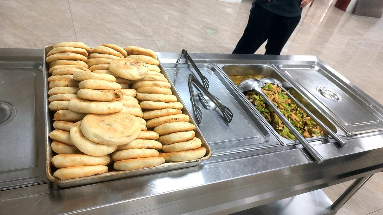 一到八年级学生放春假,我陪九年级学生就餐。今天学校食堂安排比较丰盛,因为只有九年级学生在校用餐,干脆采取打餐的方式,学生排队,由食堂人员负责盛饭。 主食由米饭馒头改成饭肉馅饼。接近200个师生,做了300个,宋经理说女生吃一个,男生吃两个,应该够了,因为这次菜做得比较多。在我们的讨论之下,又应急做了10多斤面粉的小烤饼,没有馅。 更换了肉馅饼,学生非常喜欢吃,更何况九年级的学生,个个人高马大,这样的肉饼,有的男生吃三四个也正常。 果然很快馅饼就发没了。那种没有肉馅的饼,有女生取了吃,很多学生发现没有肉馅饼了,也就不领了。 今天只有200名师生用餐,第一次采取由食堂工作人员打餐,学生排队领取,整个进餐用了半个小时。实践证明,这种排队方式容易相互干扰,用时较多。特别是学生发现饭菜不够再领第二次的情况,就变得复杂。人员越多越不好控制,还是采取分桌的方式更加合适。 人的心理就是这样,毕竟食堂不是在家里吃饭,学生发现好吃的他就多吃一些,不好吃的就会少吃。如果允许选择学生第2次去打菜打饭,他有可能盘子里会剩下别的菜,再打自己喜欢吃的菜。 我只吃了一个没有肉的饼。再加上两份菜,一份汤也足够了。 九年级的学生情商就高一些,我围着餐桌查看学生用餐时,有两名学生提醒我一块用餐。