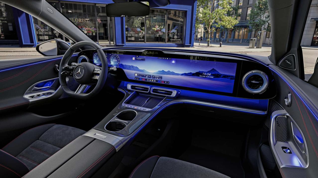 奔驰发布全新电动C级内饰 奔驰将于4月20日在韩国发布全新电动C级轿车,首秀前官方提前发布了内饰图,电动C级轿车将提供MBUX Hyperscreen和MBUX Superscreen两种屏幕选择,Hyperscreen指的是贯穿整个车窗的单块显示屏,而Superscreen是由三块独立的屏幕组成,并巧妙地隐藏在一块无缝玻璃之下。 看起来它的内饰和GLC完全相同,包括全新的座椅、星空顶全景天窗还有纯素内饰套件。此外,该车还将配备全新开发的自动空调系统,车内升温速度是燃油车型的两倍。【来自懂车帝车友圈】