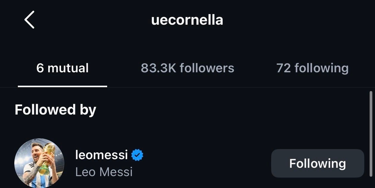 加泰罗尼亚俱乐部Ue Cornella已开始在 Instagram上关注其新老板——莱昂内尔·梅西。