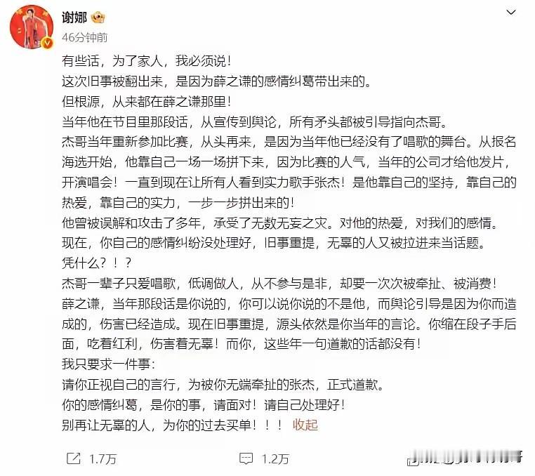 谢娜居然喊话薛之谦道歉,尤其还是隔了那么多年,原因竟然是薛之谦多年前参加吐槽大会的一个段子。 其实薛之谦2017年压根没提张杰一个字,这是他在《吐槽大会》发言:“一没提前解约,二不偷不抢,三没找有钱女友发片,四没找比我红的女友辅佐我……,当时刚好是看了这一场,说实话,根本没想到是张杰,或者是跟张杰有什么关系,另外,所谓吐槽大会上嘉宾的发言,绝大部分都是下面的编剧准备的,这些台词基本都是编剧创作了大部分,再跟嘉宾商量彩排的,嘉宾主要是负责表演,我觉得,真要道歉的话,应该是当时的编剧吧。 当然,不得不说,谢娜是真爱张杰啊,这么多年了,这心理的坎就过不去么,你觉得呢?