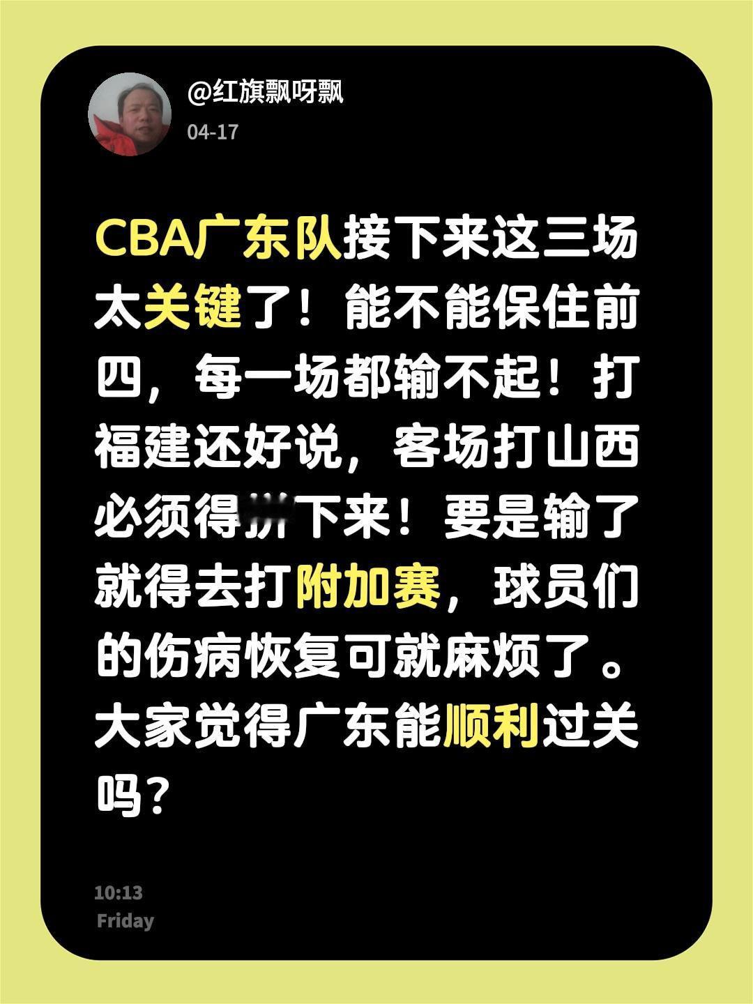 广东队还有三场比赛,能保持全胜吗!CBA广东队接下来这三场太关键了!能不能保住前四,每一场都输不起!打福建还好说,客场打山西必须得拼下来!要是输了就得去打附加赛,球员们的伤病恢复可就麻烦了。大家觉得广东能顺利过关吗?上热门 广东男篮 山西vs广东 cba广东
