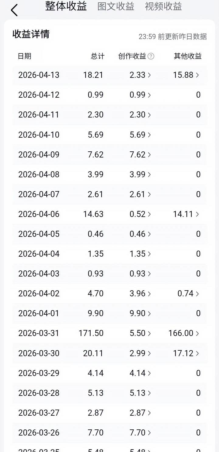 头条一万多粉丝,真实的收益有多少?实际情况可能让你惊讶。 很多人以为粉丝数过万,每天至少也要有几十甚至几百块的收入吧? 其实不然,越在头条深耕,越明白走错了方向有多可怕。 方向一旦错误,收益就会天差地别,粉丝数量过万,每天收入三五块很正常;不过粉丝几千,每天收入过百的也不在少数。 收益多少的关键在于我们对自身的定位,也可以说是平台对我们的定位,粉丝数量有时并不代表绝对的收益高低。