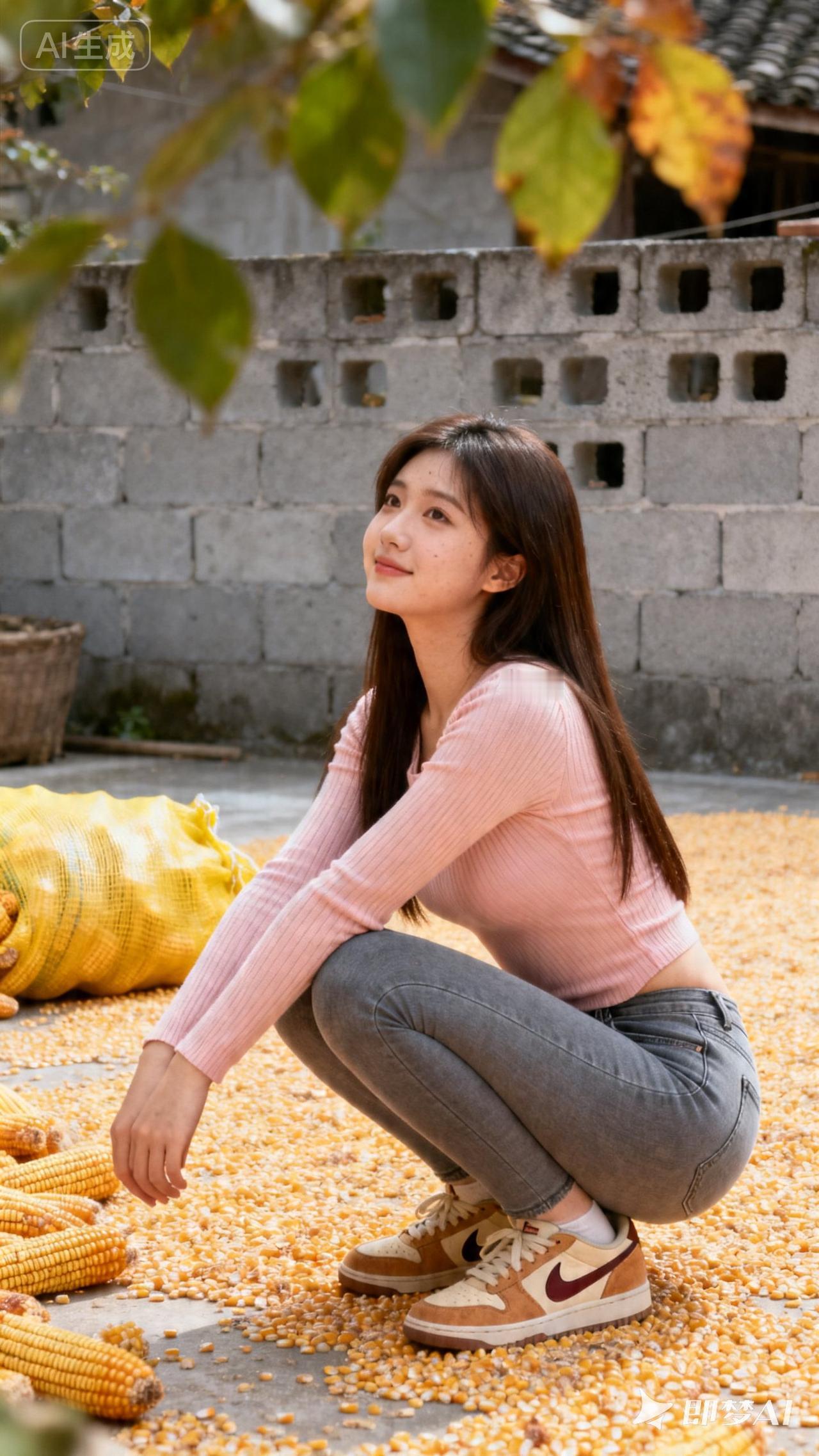 秋日暖阳下,少女与玉米的甜美邂逅🌽🌞