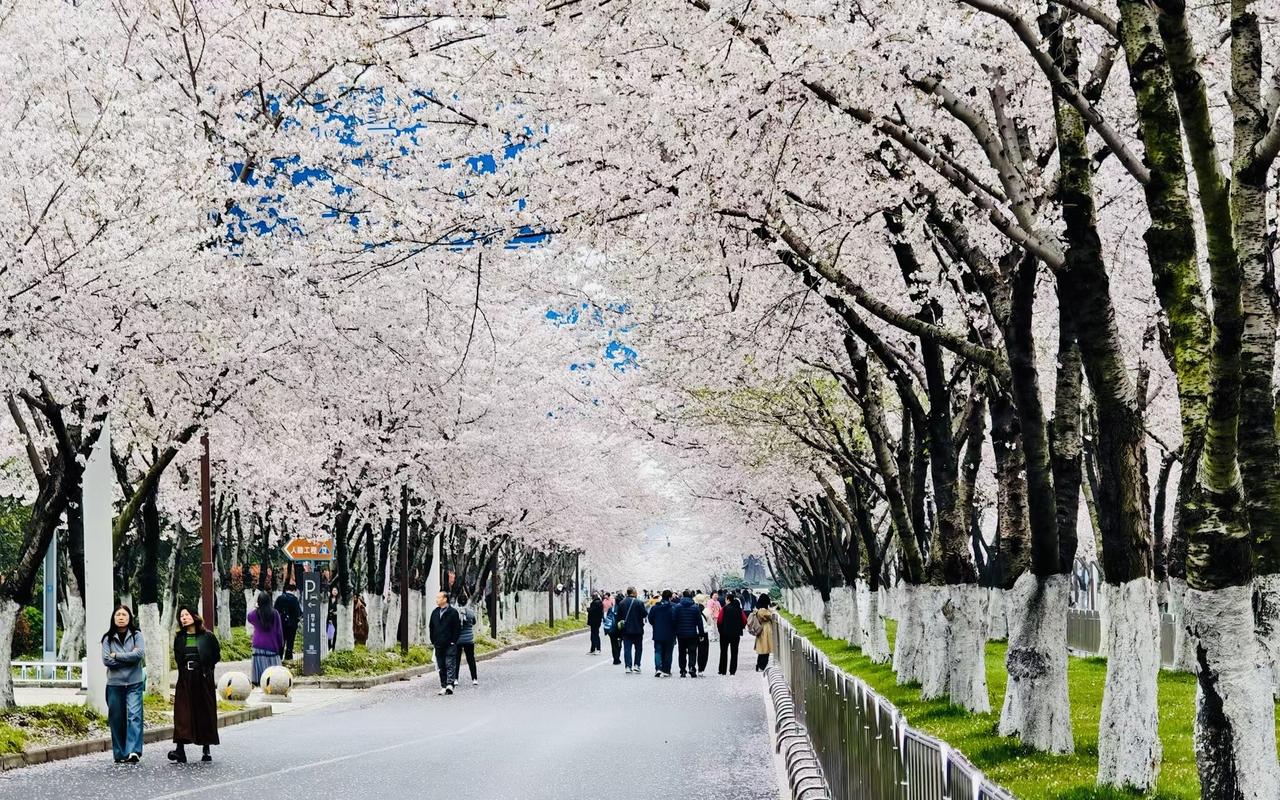 粉雪漫鉴真路,扬州春日最美樱花隧道[星星眼] [送心]扬州鉴真路樱花大道,全长1.3公里,近千株染井吉野樱沿道盛放,粉白交织、枝桠交错,织就一眼望不到头的粉色天幕隧道,是烟花三月扬州最治愈的春日秘境。 🌸风过处,樱瓣簌簌飘落,漫天“樱吹雪”,铺成柔软花毯,连空气都裹着清甜花香;晨光、落日透过花枝洒下斑驳光影,与一旁鉴真图书馆的唐风朱檐、大明寺的禅意古建相融,江南温婉与唐风雅致撞个满怀,随手一拍都是电影感大片。 ✅ 最佳打卡机位:中段斑马线(低角度仰拍隧道)、鉴真图书馆正门(古风+樱花)、林下步道(落樱氛围感) ✅ 最佳时段:清晨6:30-8:30(人少柔光)、傍晚17:00-18:30(日落暖光樱吹雪) ✅ 免费开放,紧邻瘦西湖、大明寺,一站式逛遍扬州春色! 扬州旅游