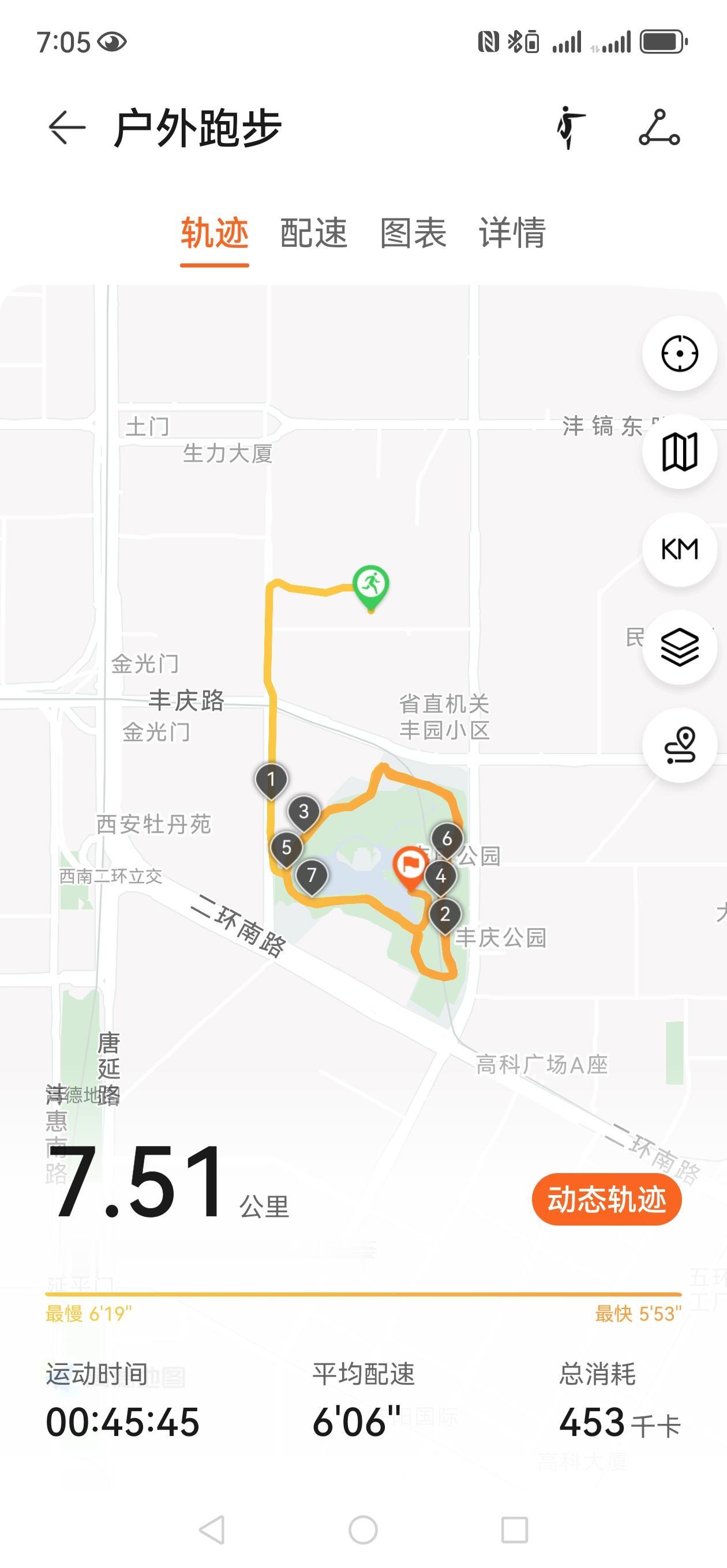 清晨起床最美好的事:晨跑 [玫瑰][心][玫瑰] 清晨起床,最美好的事莫过于来一场轻快的晨跑。 当清晨的空气还带着一丝清凉,我就出门开跑了。在距家最近的公园里,身体在运动中逐渐苏醒。 晨跑不仅是身体的锻炼,更是心灵的释放。跑步时,能和自己对话,让思绪沉淀,压力也随之释放。坚持晨跑好处多多,能增强体质、提高心肺功能、促进新陈代谢。 日复一日的坚持,能让身体更健康,精神更饱满。清晨的阳光洒在身上,仿佛为一天注入了满满的能量。 晨跑,就是一种自律又美好的生活方式。 今日晨跑打卡,7.51公里,用时45分 45 秒,消耗热量 453千卡,爽歪歪。 记录我的2026