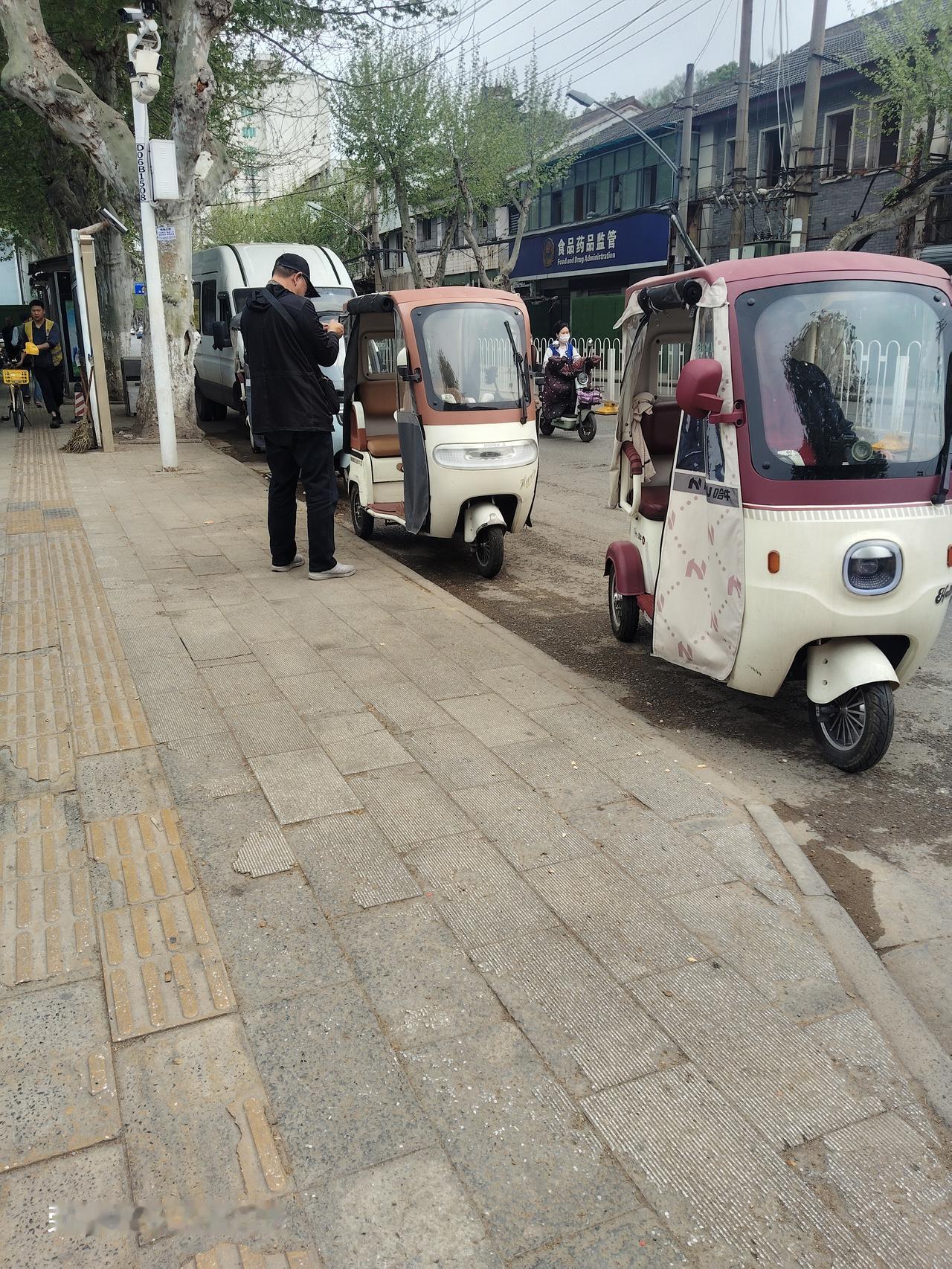消失十几年的载人电动三轮车又现武汉 在黄鹤楼地铁站A出口,一排载人三轮电动车(武汉叫麻木)停在地铁站出口马路边等待游客。我看了一会也没有人乘坐,可能距黄鹤楼太近,游客觉得还是走走为好,亲身体验一下武昌老城区的市容市貌,人文习俗。