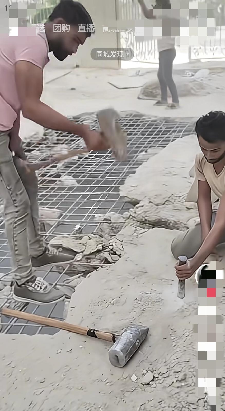 国内真没有这么干活的,如果大锤砸手上怎么整啊?肯定就得截肢了。