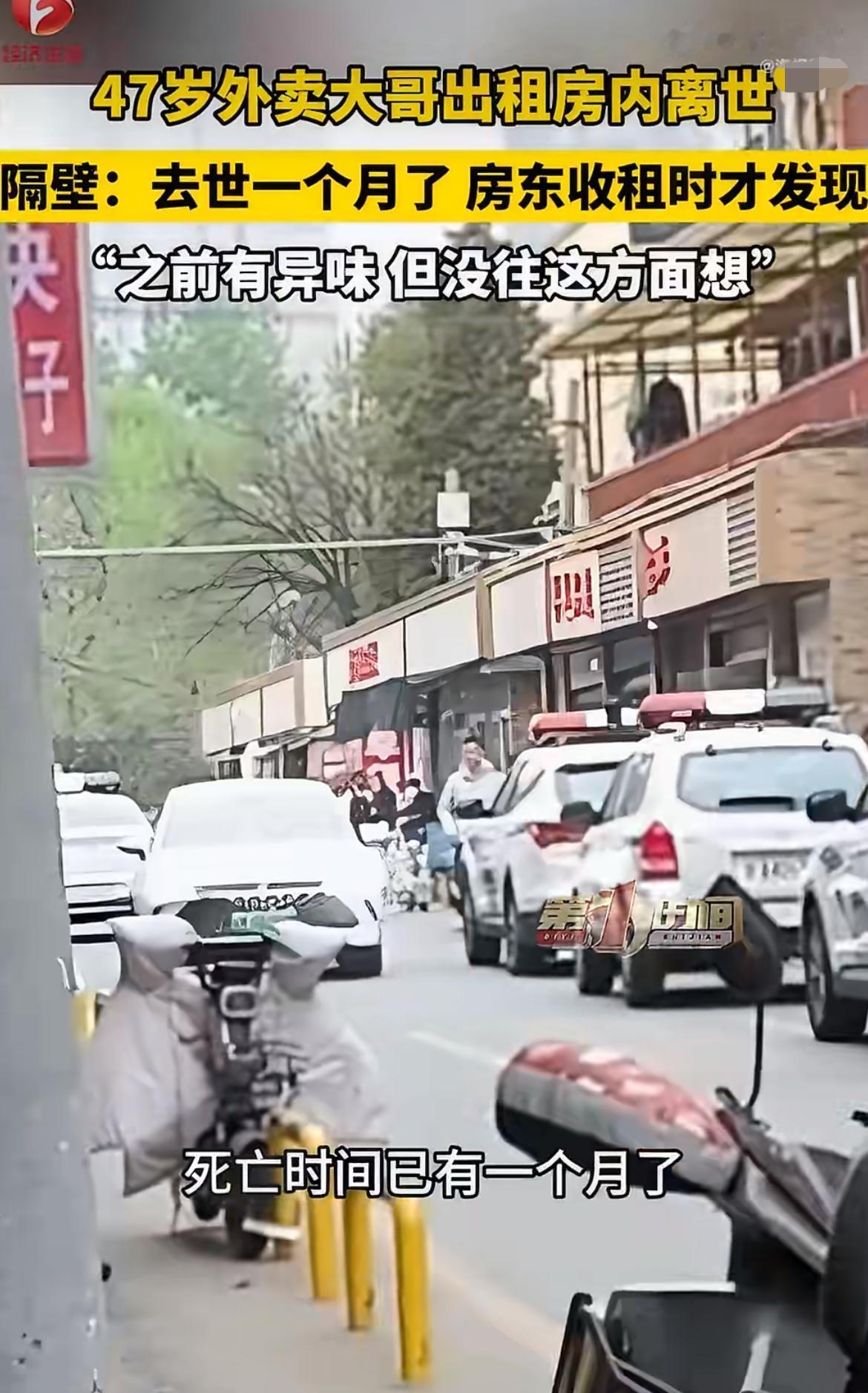 “可怜人!”北京一名47岁外卖大哥,在出租屋里离世一个月都没人发现,之前邻居早就闻到楼道有怪味,可谁都没当回事,最后是房东上门收房租才发现,为什么整整30天都没人察觉到他的失踪? 一位来北京打拼的47岁大哥,平时靠送外卖维持生计,一直一个人租住在便宜的小单间里,平时早出晚归跑单,和邻居们几乎没什么来往,大家平时也很少能见到他的面。 4月14日当天,房东按照约定上门收房租,走到门口敲了好半天门,屋里一点动静都没有。房东一开始以为大哥出去跑单了,可联系了半天也联系不上人,担心出什么事,就用备用钥匙打开了房门,结果一进门就发现这位外卖大哥已经没有了生命体征。 房东赶紧报了警,隔壁的邻居马先生听到动静也赶了过来,才知道好久没露面的大哥居然出了这样的事。马先生后来说,大概前一段时间,楼道里时不时能闻到奇怪的异味,当时大家还猜测是不是什么东西放坏了,也没敢往这么严重的方向想,也就没多过问。 警方到场之后做了初步调查,目前推测这位外卖大哥的死因可能是心梗,推算下来离世的时间差不多有一个月了。因为大哥平时独来独往,也没什么亲戚朋友在北京,这一个月里没人找他,也没人发现他出了意外,直到收租的这天才被发现。 附近的住户说:平时看到他骑着电动车早出晚归,风里来雨里去跑单,谁也没想到好好的人就这么走了,连个发现的人都没有。他跑外卖这些年,敲开过无数顾客的家门,给不少人送过餐,可自己出租屋的门,却整整一个月没人再敲开过。 目前辖区警方已经联系上了这位外卖大哥的家属,家属正在赶来处理后续的后事,这件事的具体情况也还在进一步调查中。 大家平时出门在外一定要多注意身体,定期和家人朋友报平安。觉得这条内容有用的话,麻烦点赞转发给身边独自在外打拼的朋友,点关注,后续有更多相关消息我们也会第一时间同步给大家。华境S全球首秀标配华为乾崑 可爱多一点,干爽多一点 大众9X预售发布 来源:第一时间