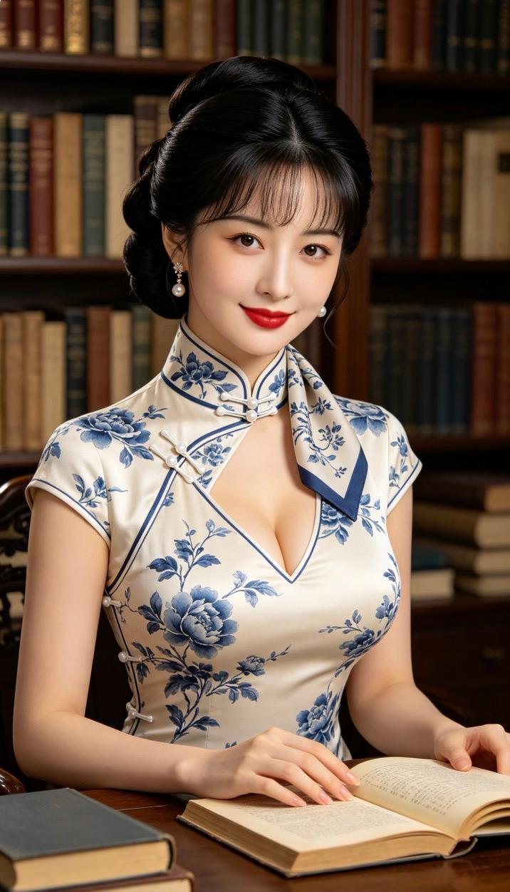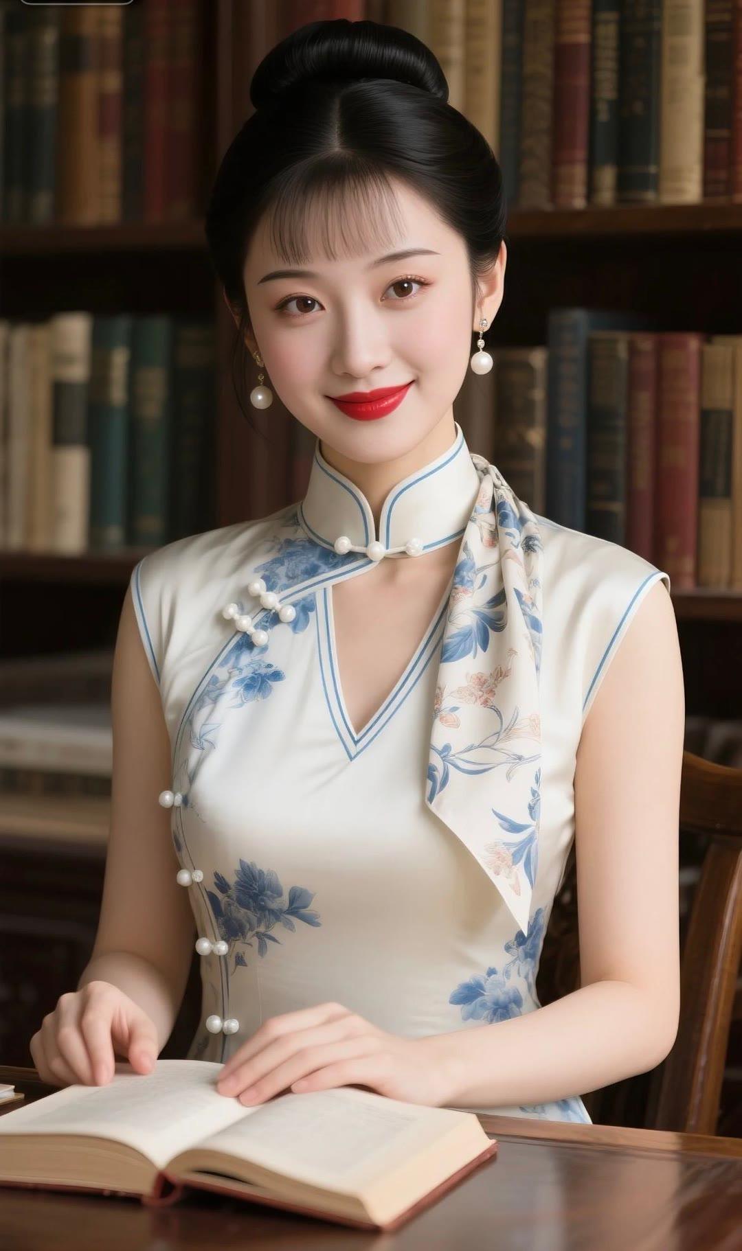 一袭墨色旗袍,绣蝶衔香,勾勒东方温婉风骨。