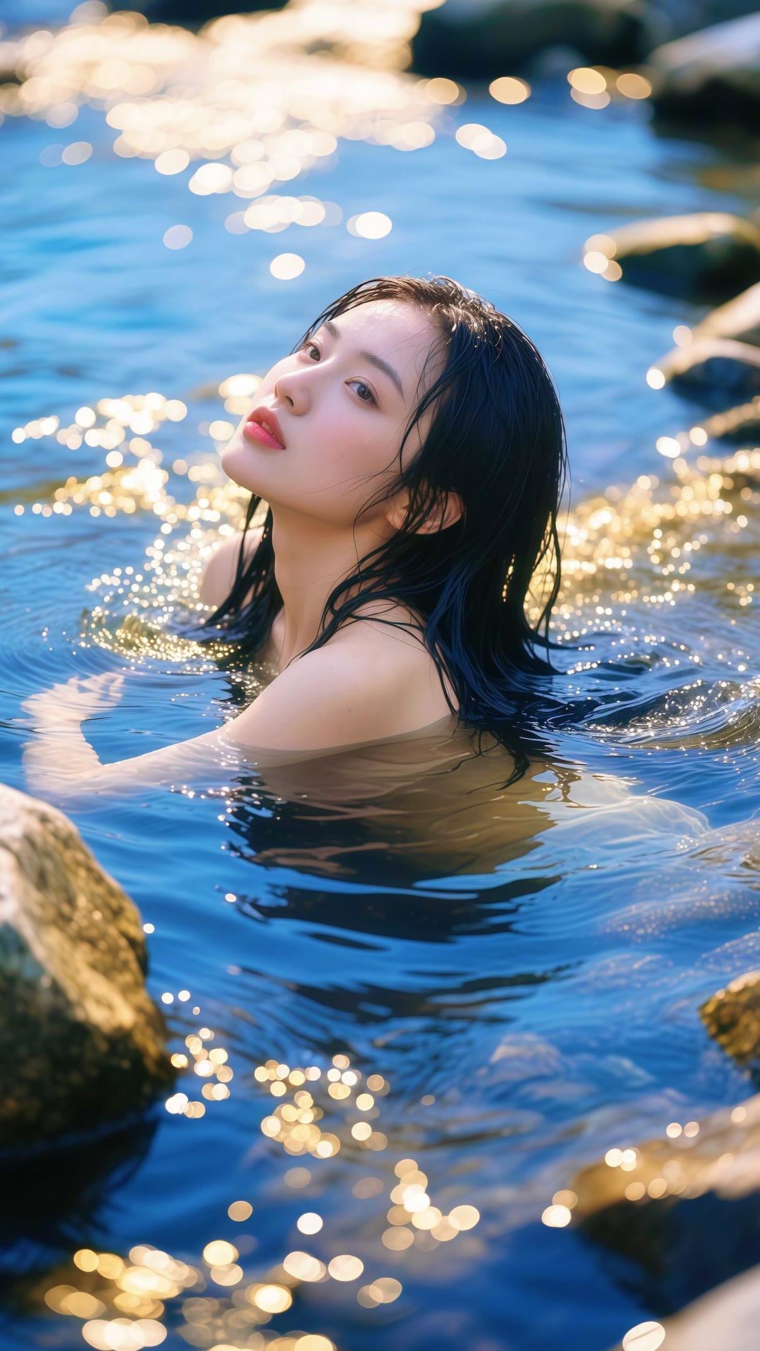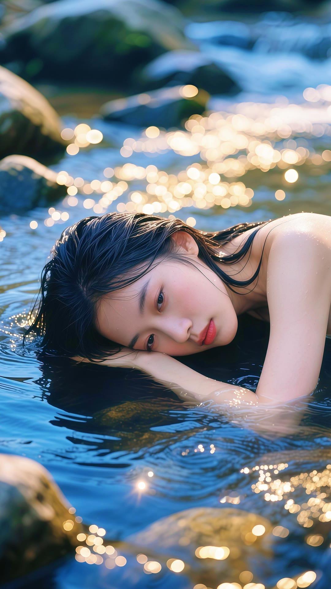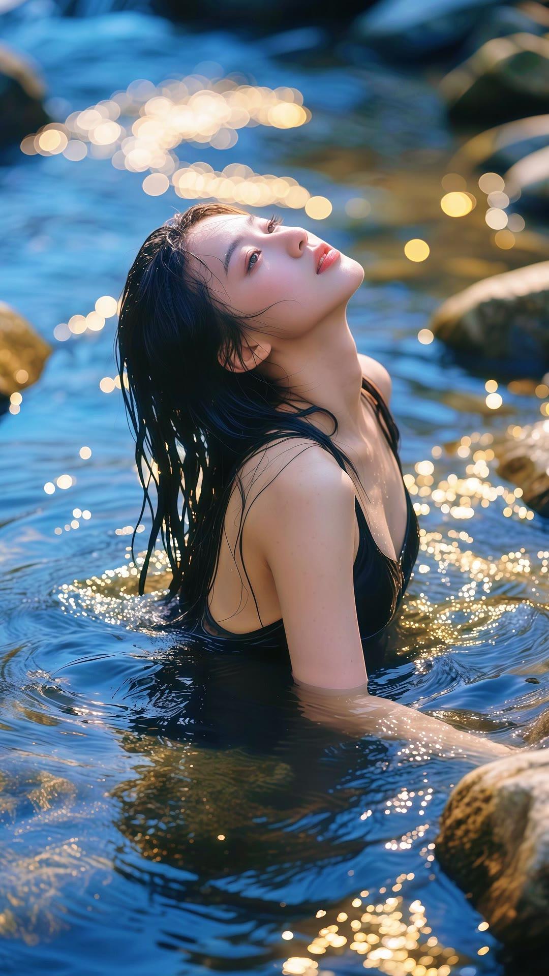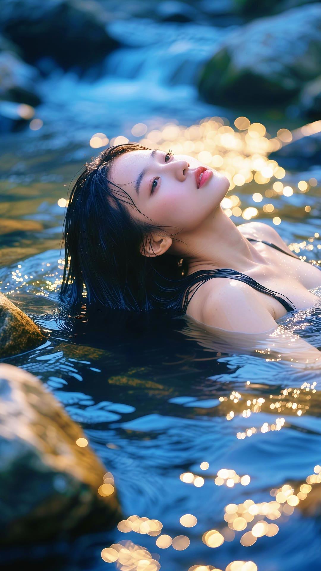 仙气飘飘的汉服少女,漫步在清澈的小溪边,宛如画中人。
