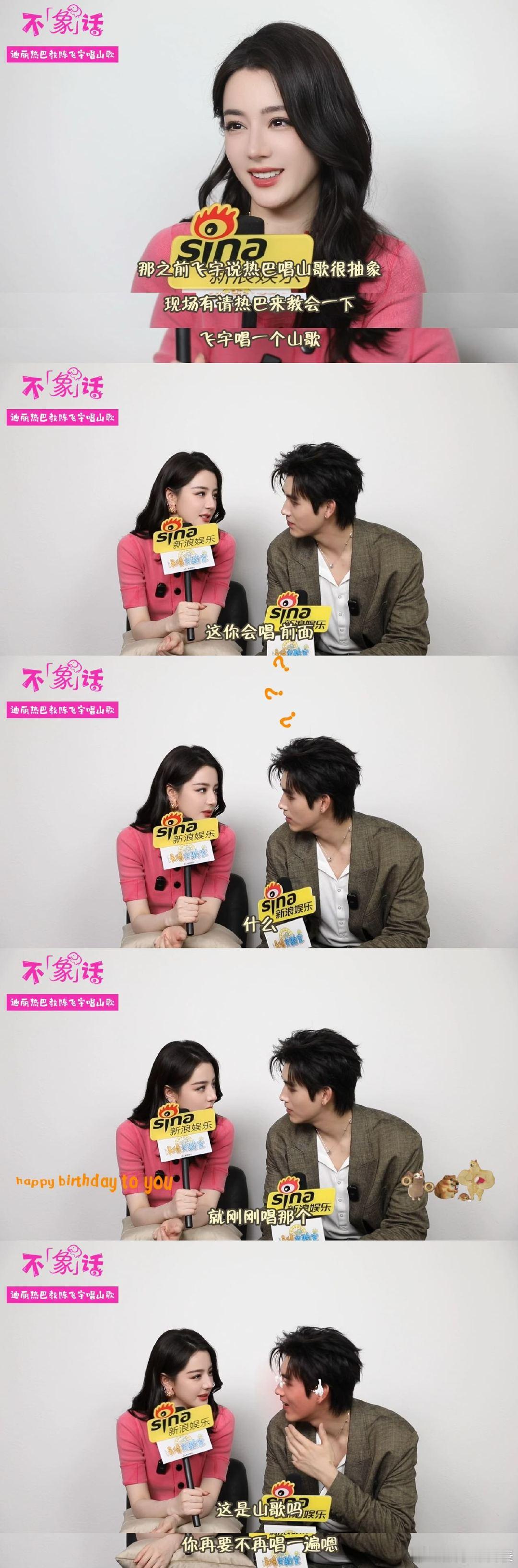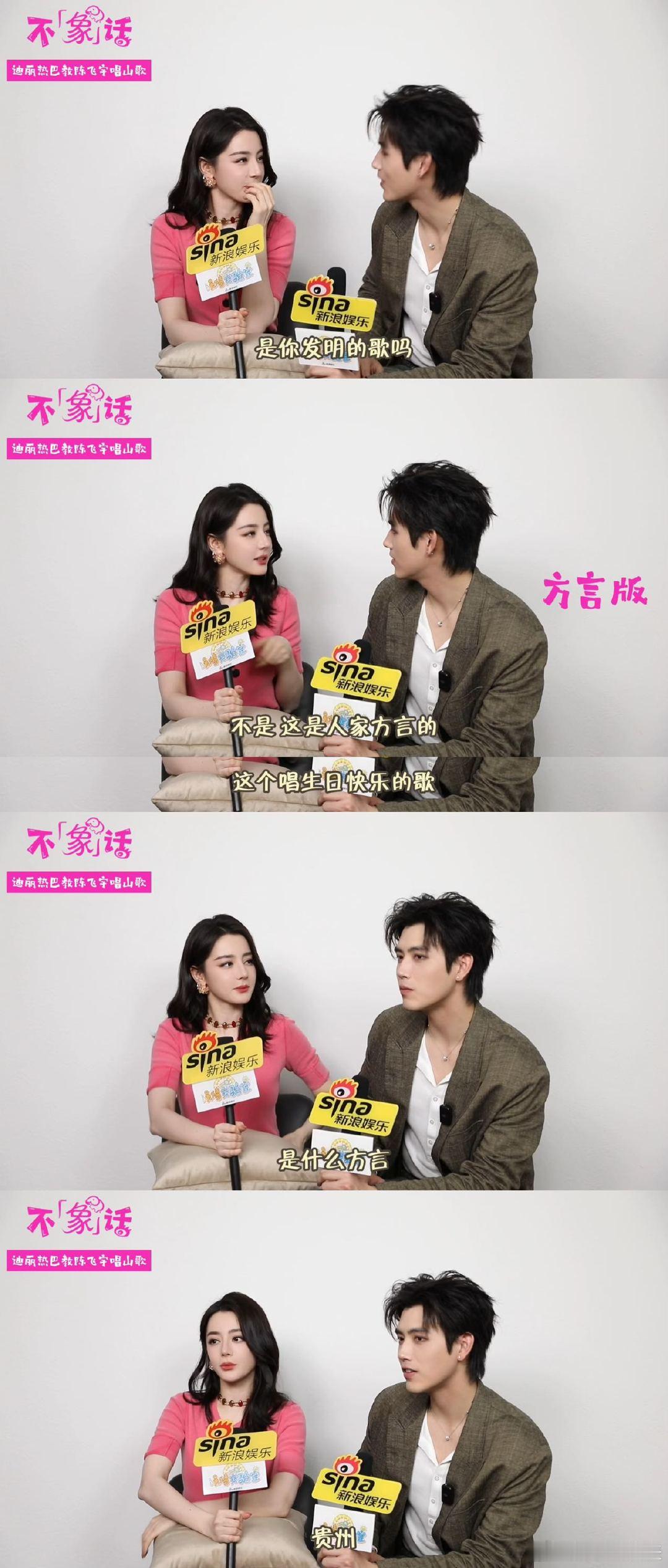 迪丽热巴教陈飞宇唱山歌迪丽热巴在陈飞宇面前都变e了新浪娱乐《娱情实验室》抽象系列视频「不“象”话」迎来嘉宾热巴现场教学山歌太丝滑,张嘴就是贵州方言版生日歌,抽象女王名不虚传飞宇害羞跟唱,还以为是热巴原创的唱法,这误会太好笑了更多精彩内容,快来看看吧!