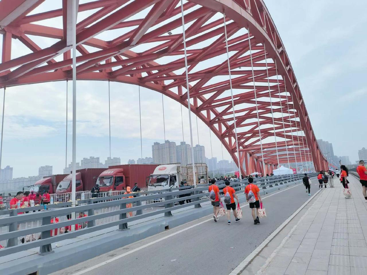幸福大桥开通了,但是非机动车道没有开通,北边的上班族为了赶时间,仍然骑电动车上桥