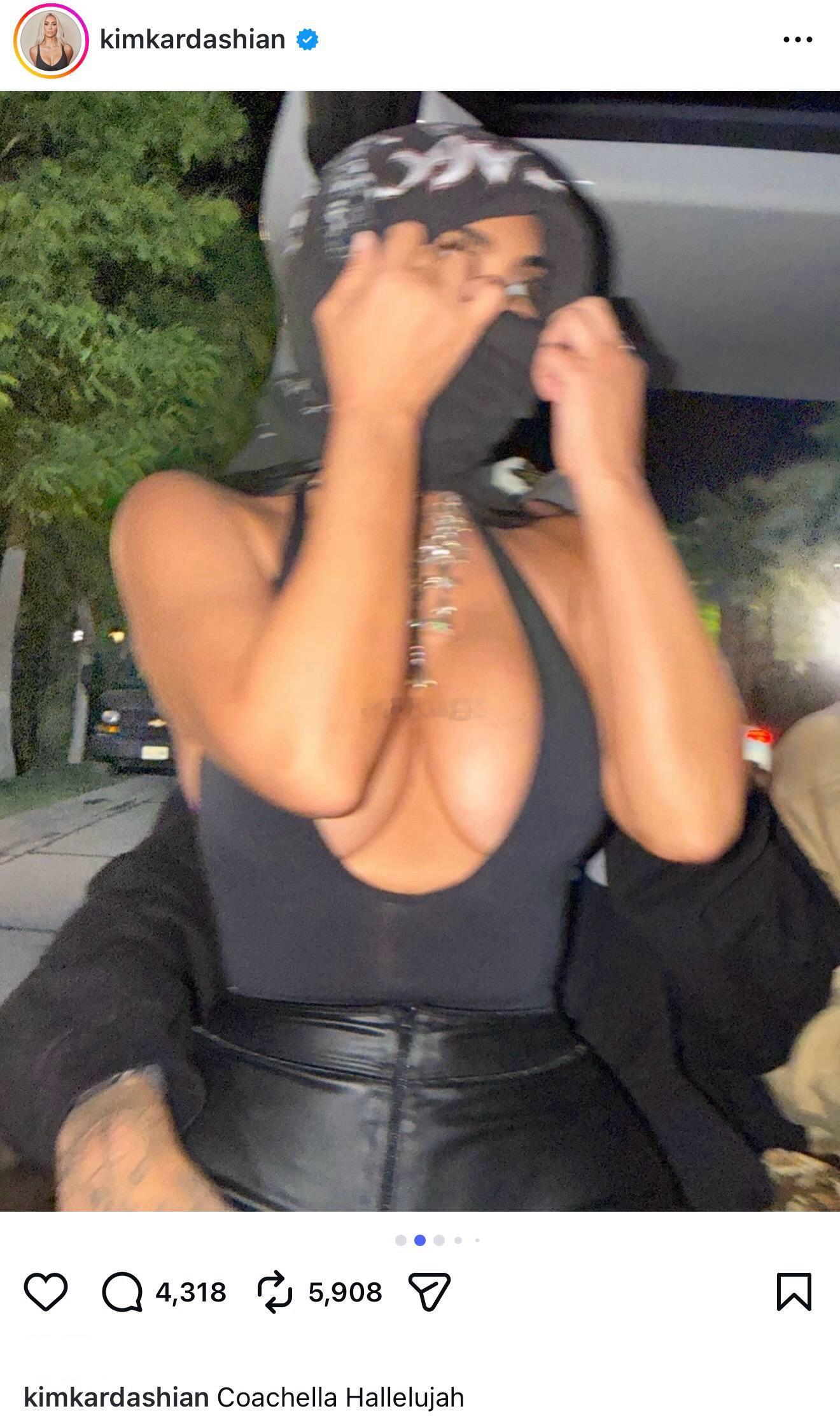 金·卡戴珊分享了几张科切拉音乐节的照片,其中一张是刘易斯·汉密尔顿的手环抱着她(图一)🙊👇