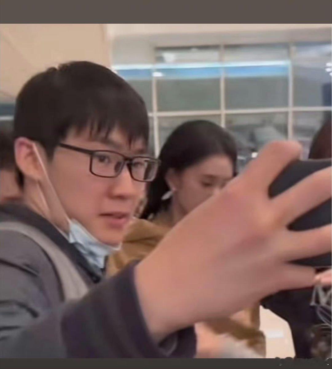 一名男子不顾现场安保人员阻拦,两次强行突破人群接近刘浩存。刘浩存被男粉强行合照