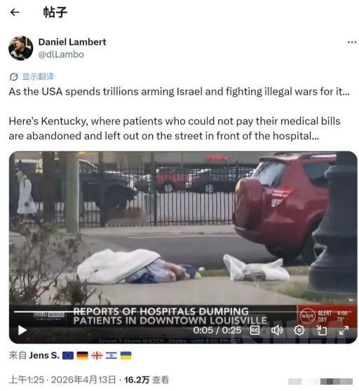 美国的低人权成本是他们的一大优势,举个例子,病人没钱治病,美国医院只要把他们拖出来,直接倒地上就得了,毕竟资本主义不养闲人。 2015年佛罗里达州,57岁的芭芭拉·道森因在医院情绪激动,被医护和警察强行带离急诊室,她当时呼吸困难,反复哀求“我无法呼吸”,却还是被铐在路边,倒地后近二十分钟没人施救,最终因肺栓塞死亡。 还有无家可归的病人,被医院注射镇静剂后,用私家车拉到其他医院门口扔下,只留一张简单处方,连基本的病情交接都没有。 这些人不是危言耸听的个案,而是美国医疗体系里,底层穷人随时可能遭遇的命运——医院的第一考量从来不是救死扶伤,而是有没有医保、能不能付钱,没钱就等于没有救治的价值,连留在医院的资格都没有。 这种现象的根源,是美国医疗彻底资本化的本质。医院、保险公司、药企都是逐利的商业主体,利润永远排在生命前面。 联邦法律虽要求急诊室做初步筛查和稳定病情,但也仅限于“紧急”范畴,一旦过了急性期,或是慢性病、常规治疗,没钱没医保就会被立刻拒之门外。 2024年,佛罗里达州一家医院直接切断与当地低收入无医保计划的合作,除了危及生命的急诊,其他所有治疗一概不接,理由是补贴不够覆盖成本。 对医院来说,救治穷人是赔本买卖,与其浪费资源,不如把床位留给付费能力强的病人,把“无用”的穷人清理出去,降低运营成本,这本就是资本最直白的算计。 这种冰冷的规则,早已渗透到普通人的生活里,形成无解的死循环。美国至今有两千多万人完全没有医保,还有大量人拿着低保、低收入保险,保障形同虚设——保费年年涨,免赔额高到离谱,一场小病就要自掏腰包,一场大病直接倾家荡产。 很多家庭为了付医药费,不得不省吃俭用、借钱度日,甚至放弃吃饭、水电等基本开支。19岁的少年尼克买不起胰岛素,医院药房明明有药,却因为没钱眼睁睁看着他离世; 64岁的米利森特·麦金农因没医保,乳腺癌拖到晚期才确诊,辗转多家医院只能被短暂稳定后送回家,最终不治身亡。 他们不是个例,每年有数十万美国人,因为没钱没医保,死于本可以治愈的疾病。 在这套体系里,穷人的生命被明码标价,没钱就等于被剥夺了生存权。无家可归者的平均寿命只有四五十岁,比普通人短近30年; 最富和最穷的人群,寿命差距能达到15年。 医院不会管你是不是走投无路,不会管你是不是上有老下有小,资本的逻辑从来都是优胜劣汰、弱肉强食,“低人权成本”就是这样成为所谓的“优势”——不用为底层的生存兜底,不用承担额外的社会责任,把所有成本都转嫁到穷人身上,医院和资本赚得盆满钵满,而没钱的人只能在病痛和绝望中自生自灭。 “资本主义不养闲人”,是资本为冷漠和残酷找的借口。当医院把病人拖到街头、扔在路边,当生命的价值由钱包的厚度决定,所谓的人权、公平、人道,都成了一句空话。 这种以金钱为唯一标尺的医疗体系,不是什么先进的优势,而是一个社会最冰冷、最悲哀的伤疤,它时刻提醒着世人,在资本至上的逻辑里,底层人的生命,从来都轻如鸿毛。