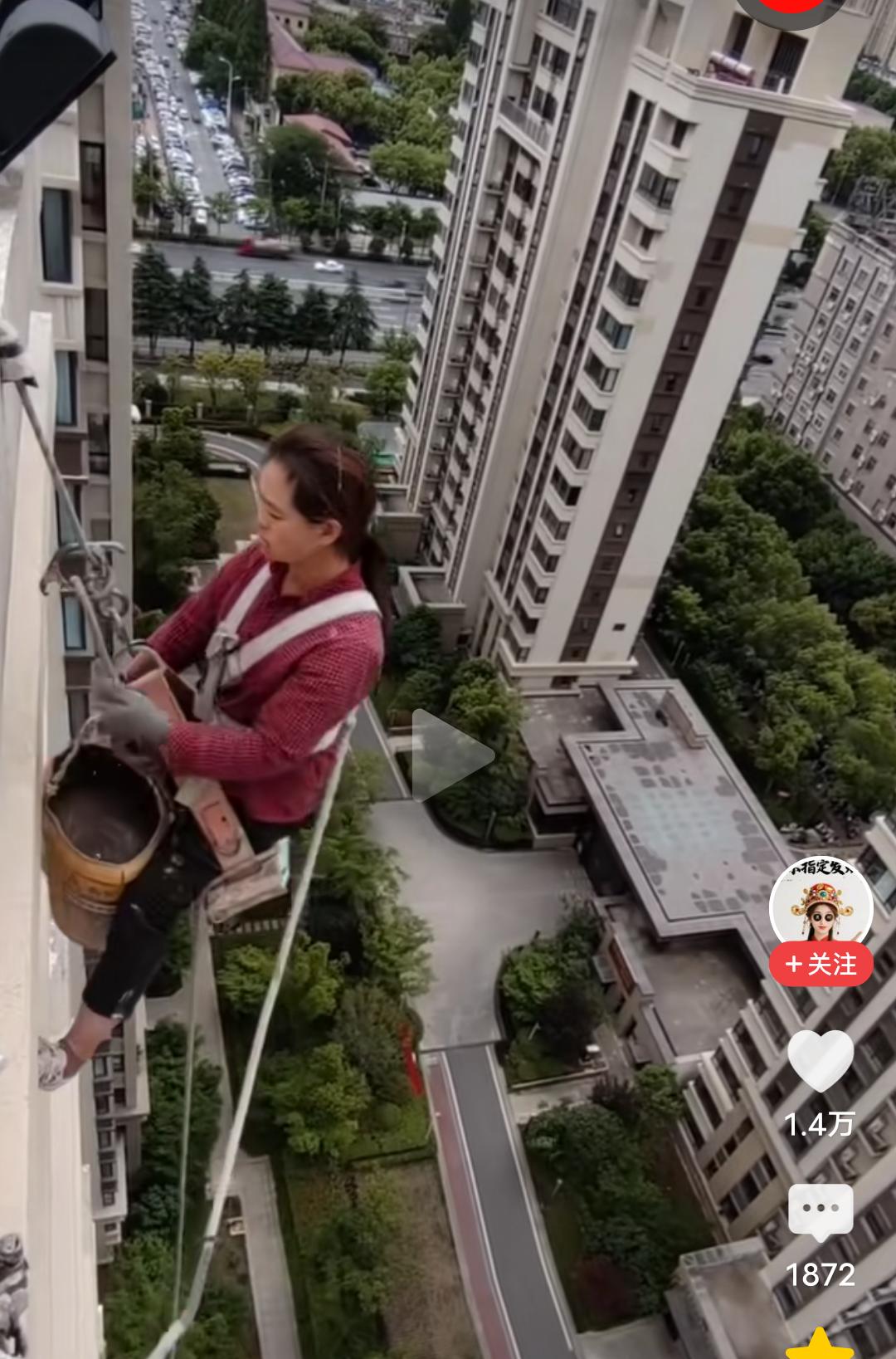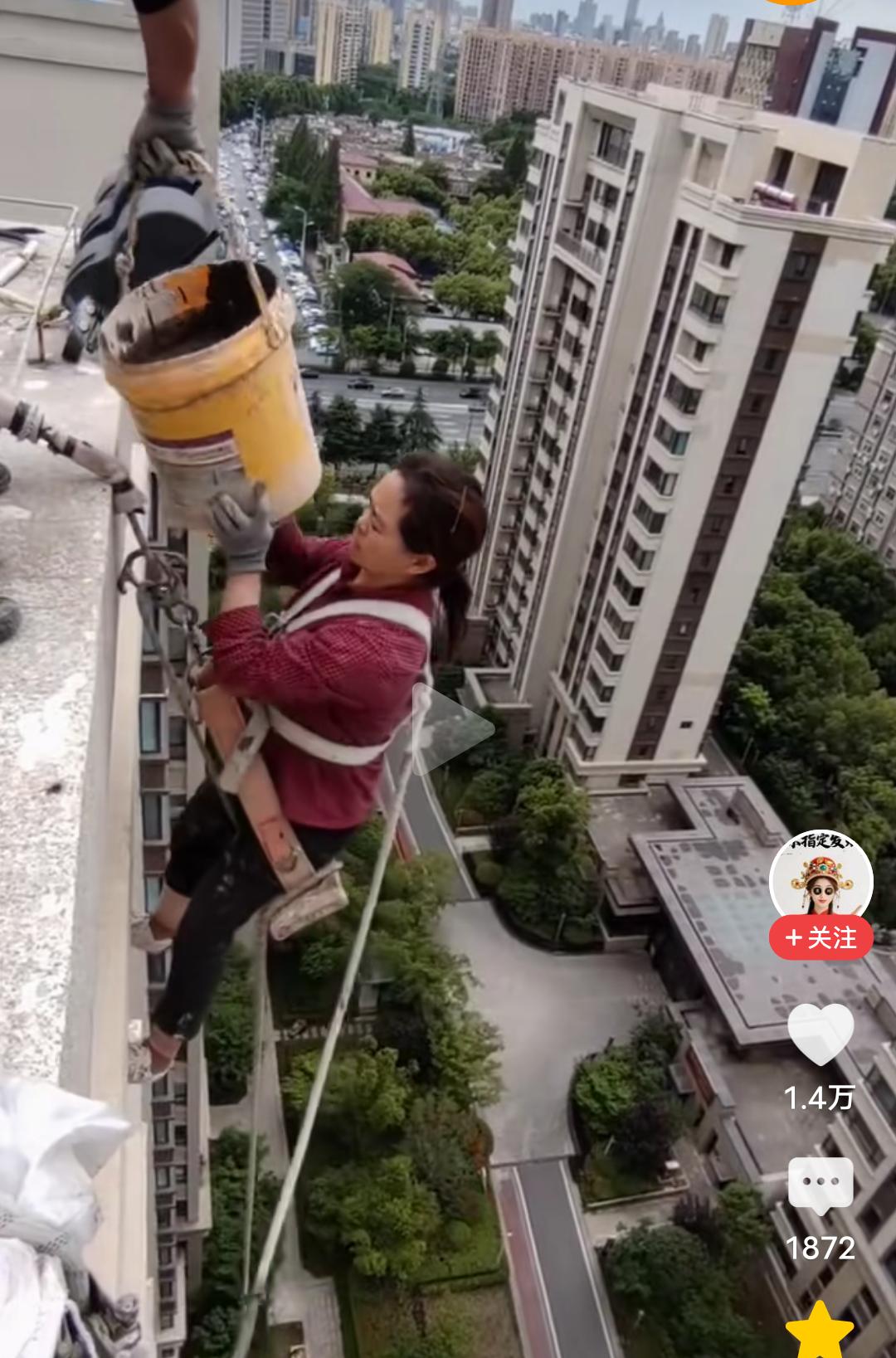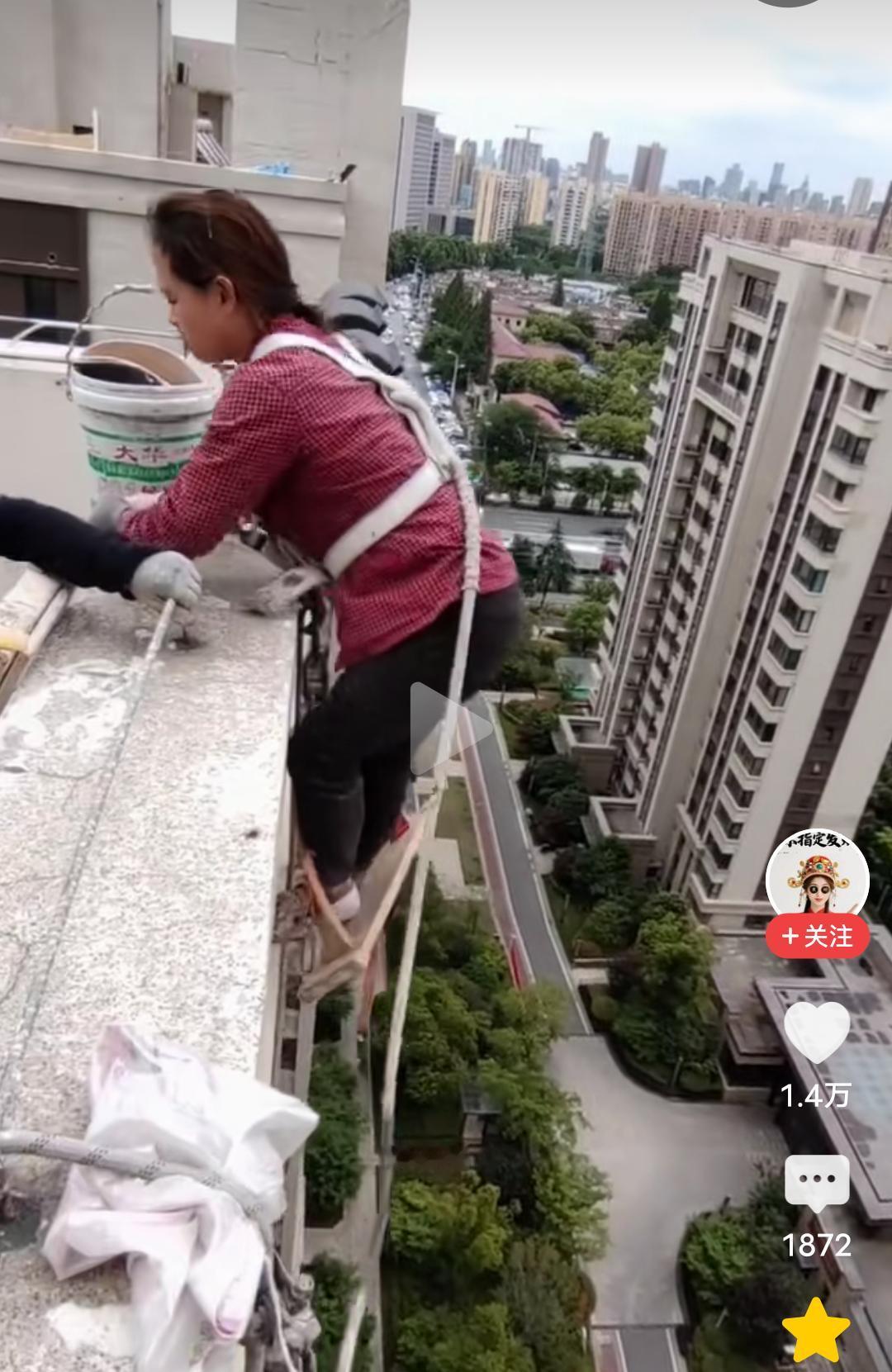 刷到一个视频,真的是五味杂成,既有佩服,又有无奈,但更多的是伤感! 一个妹子,从那么高的楼顶上,带着那么多作业用的工具和料,还有那么大一桶的砂浆,真的是太勇敢了,说实在的,光让我看着腿就软了,更别说干活了。 本来是来到这个世界看风景的,怎活的如此艰难? 生活真的不易,若非身抗养家担,谁愿拿命赌明天? 这就是底层人真实的生存现状,祝福他们吧!