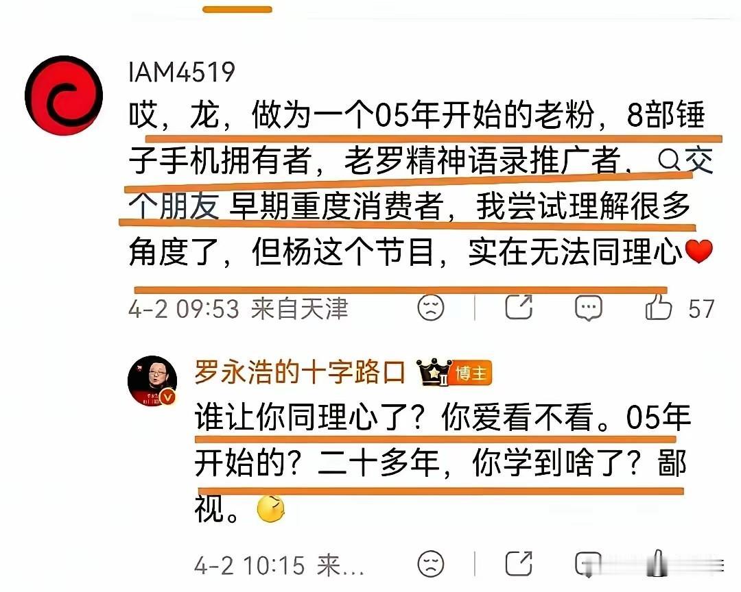 罗永浩精日是最大的坏?你错了,那是你没看他在课堂上是如何诋毁教员的! 我当年可没少看他的视频,他那种骨子里的坏,就是一个从来没有过善良的人,才能说出来的话。诋毁、谩骂、侮辱的词汇脱口而出。 可以说他离开新东方和这一点有直接的关系,所以我从来没有喜欢过罗永浩,也从来没有喷过一句俞敏洪。铁也好、抠也罢,无非都是正常人,谁也别说谁。 大家凡是在网上看到骡永浩关于精日言论,那基本上都已经是在2010年之后的事情了,大量的媚日言论,媚西方言论,最令人作呕的是对同胞的诋毁,无所不用其极。 然而,他依然可以高枕无忧的在中国做节目,请名人,高谈阔论。此时此刻,我的世界是松动的,我无法想象这样一个人,为什么还能依然掌握话语权! 罗永红最聪明的一点,就是他总是喜欢扮演社会良心,总是打着为民请命的旗号,你比如说他搞西贝,从来不是以个人名义,而是立马拉起来高度,站在一个消费者的角度,立马引发群像效应。 在此之前他还搞过必胜客,很多人可能都不不知道吧?人家必胜客直接发了一张消费券,事件立马平息了,罗桑吃了闷鳖亏,眼瞅着弄不了,立马闭嘴了。既然是社会良心,为何不选择硬刚呢? 他说了那么多“公知类”类的话,很多话你只要用心分析,最终会怎么样都会回到他自己的身上,然而他却依然可以在那里恬不知耻的发言。说到底骨子里还是西方那一套:民主、人权、言论自由、哗众取宠的傻叉认知,充分暴露了他就是赤裸裸的媚骨分子。一旦遇到真正的硬茬,就会立马装死。 这种人,战争年代跪的最快,和平年代蹦的最欢。 最可笑的就是他的那群粉丝,包括现在的粉丝。都被主人扔到了粪坑里了,自己努力爬起来,自己身上的屎还没冲干净呢,第一时间竟然是去求“安慰”,却被无情的丢下一句话,你丫的也配。