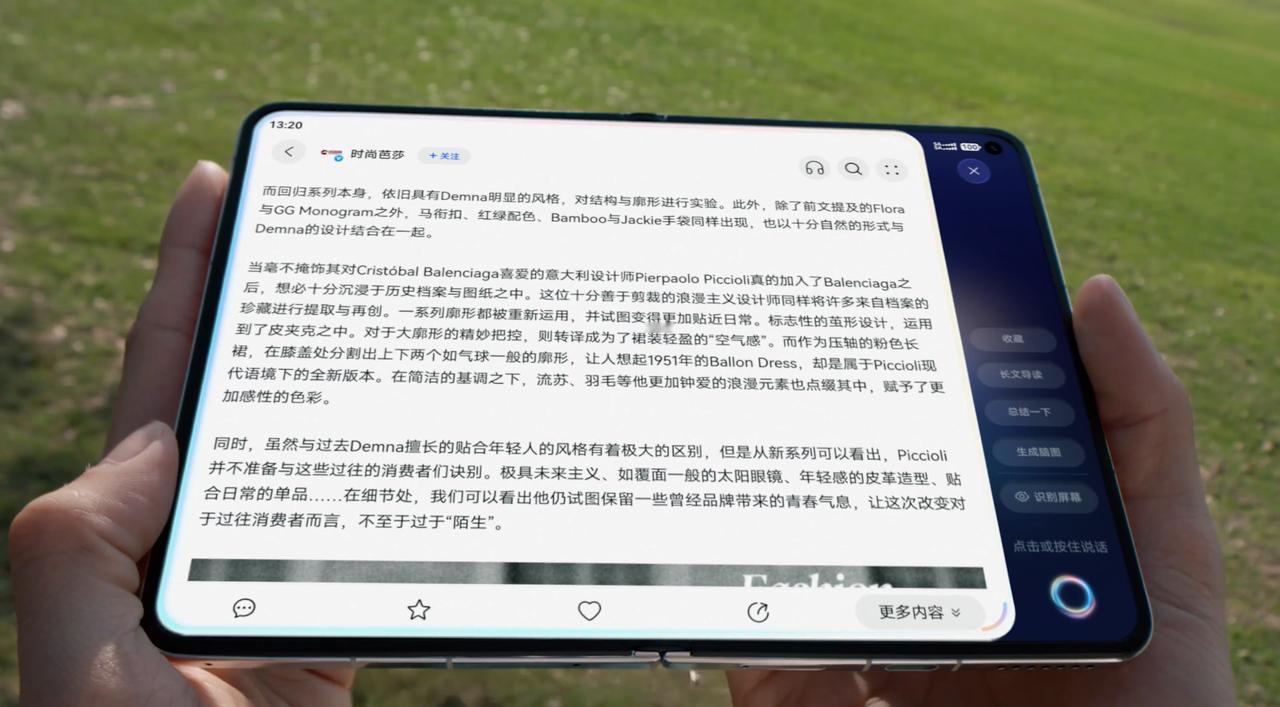 早上通勤在地铁上看新闻,手指轻轻一划选中不懂的名词,侧边的小艺立刻给出解释;开会前日程自动识别,打车入口直接弹出……这不是科幻电影,这是华为大阔折带来的真实未来。华为Pura X Max之所以能成为行业AI交互的全新标杆,是因为它终于解决了“折叠屏大而无用”的痛点。华为大阔折将首发小艺伴随式AI 作为全球首款大阔折,它依托阔型屏带来的显示优势,带来业界内首个伴随式AI解决方案。这种全新侧边态伴随式交互,支持全局自动待办,智能识别屏幕内容,却从不打断你当前的操作。视频最后那个“小艺伴随中”的状态,暗示了它强大的后台伴随能力,这才是真正的智能融入日常。这种体验上的焕新感Max,离不开华为在折叠屏领域的深厚积累。华为发布全新AI黑科技 当然,顶级的体验意味着顶级的定位,作为对标华为Mate X7的超高端旗舰,受供应链内存芯片涨价影响,其价格预估在1.2W+。4月20日的发布会,绝对是科技圈的重头戏,这款让友商只能跟进的大阔折,你期待吗?