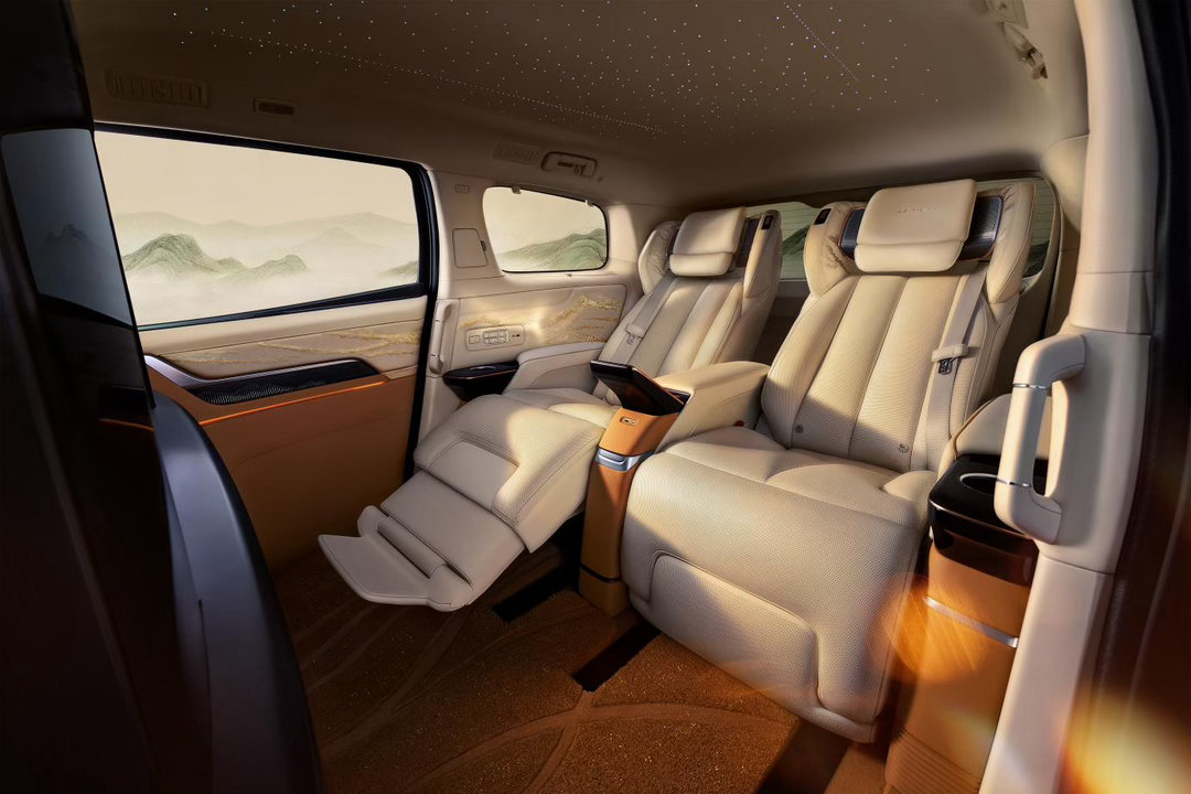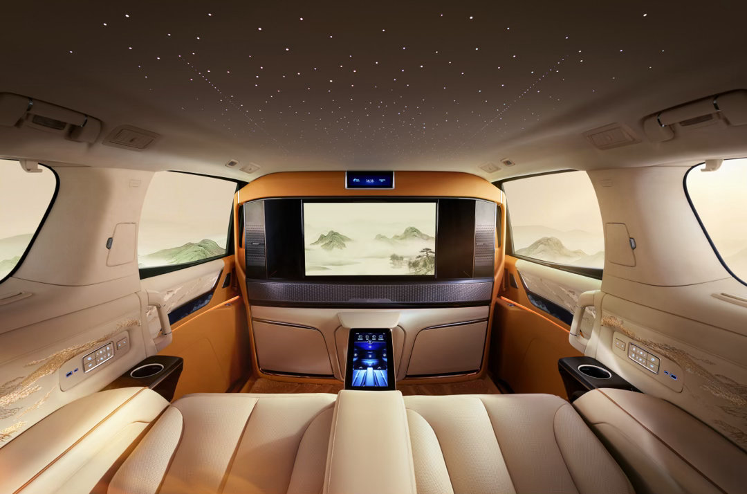 其中四座版尊享关山飞雪双色车身,行业首创一键礼宾模式及搭载32寸可升降智能屏,可一键切换全封闭私密座舱与通透交互模式等豪华功能。