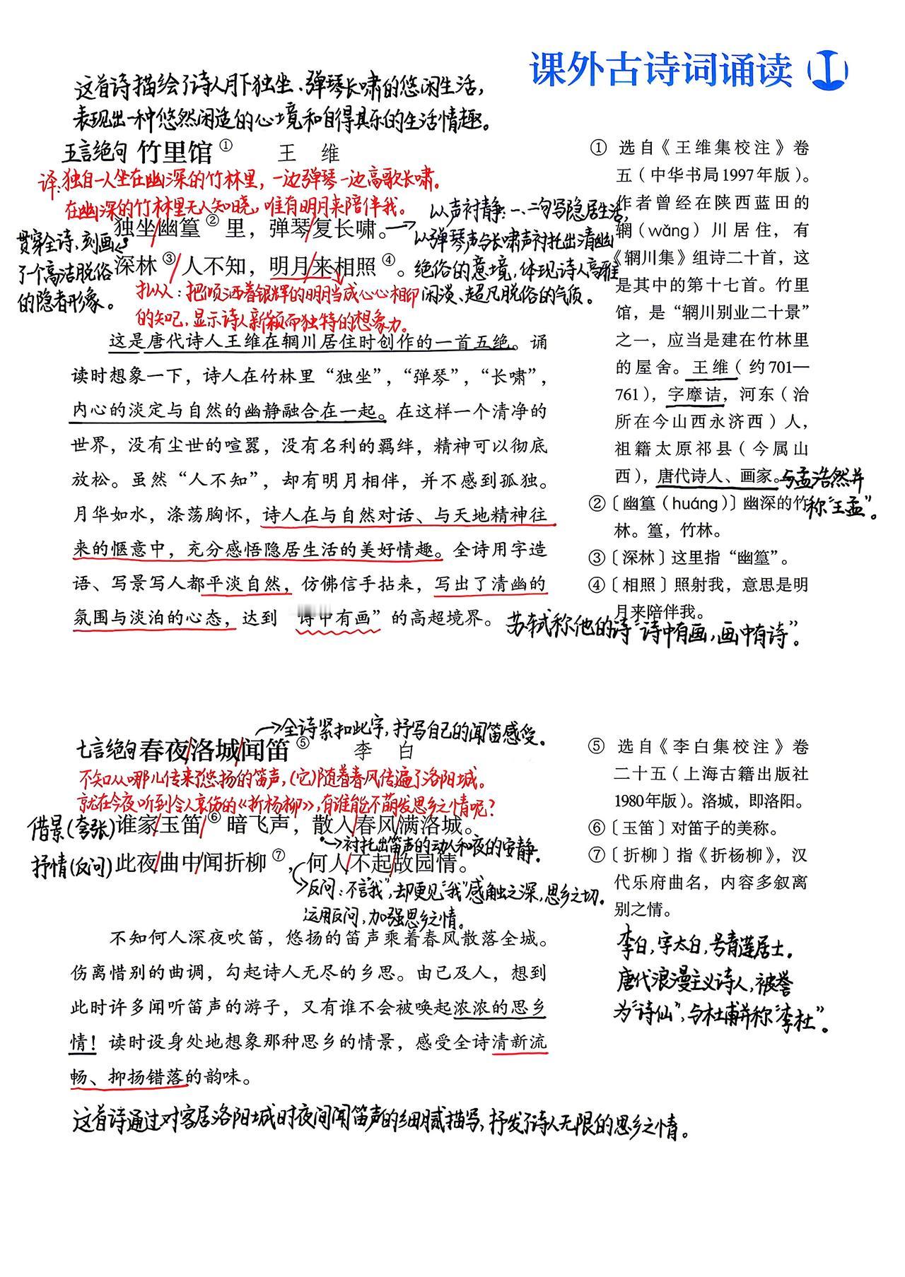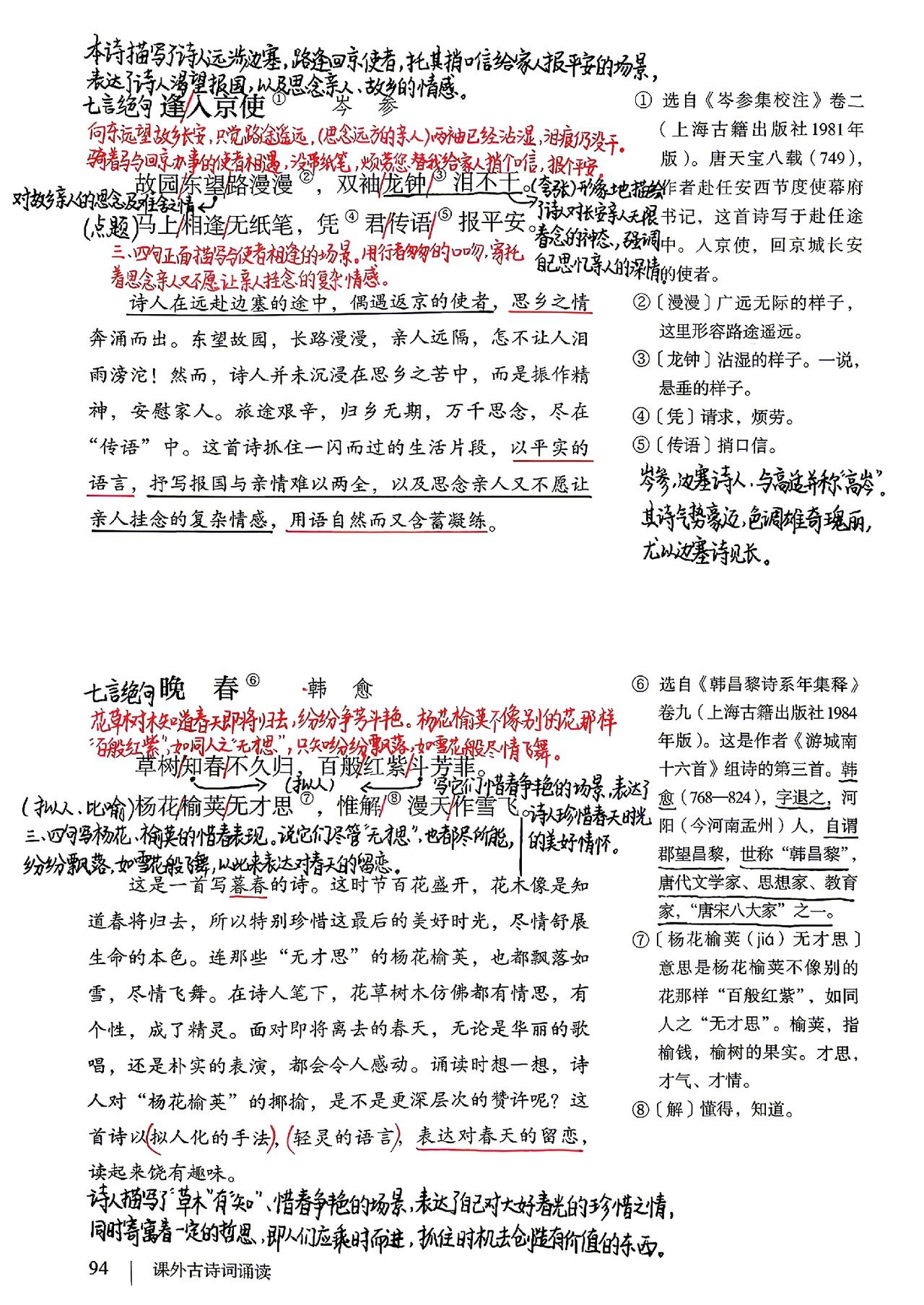 七年级下册语文,第三单元《课外古诗词诵读》课堂学习笔记,收藏预习复习~七年级语文