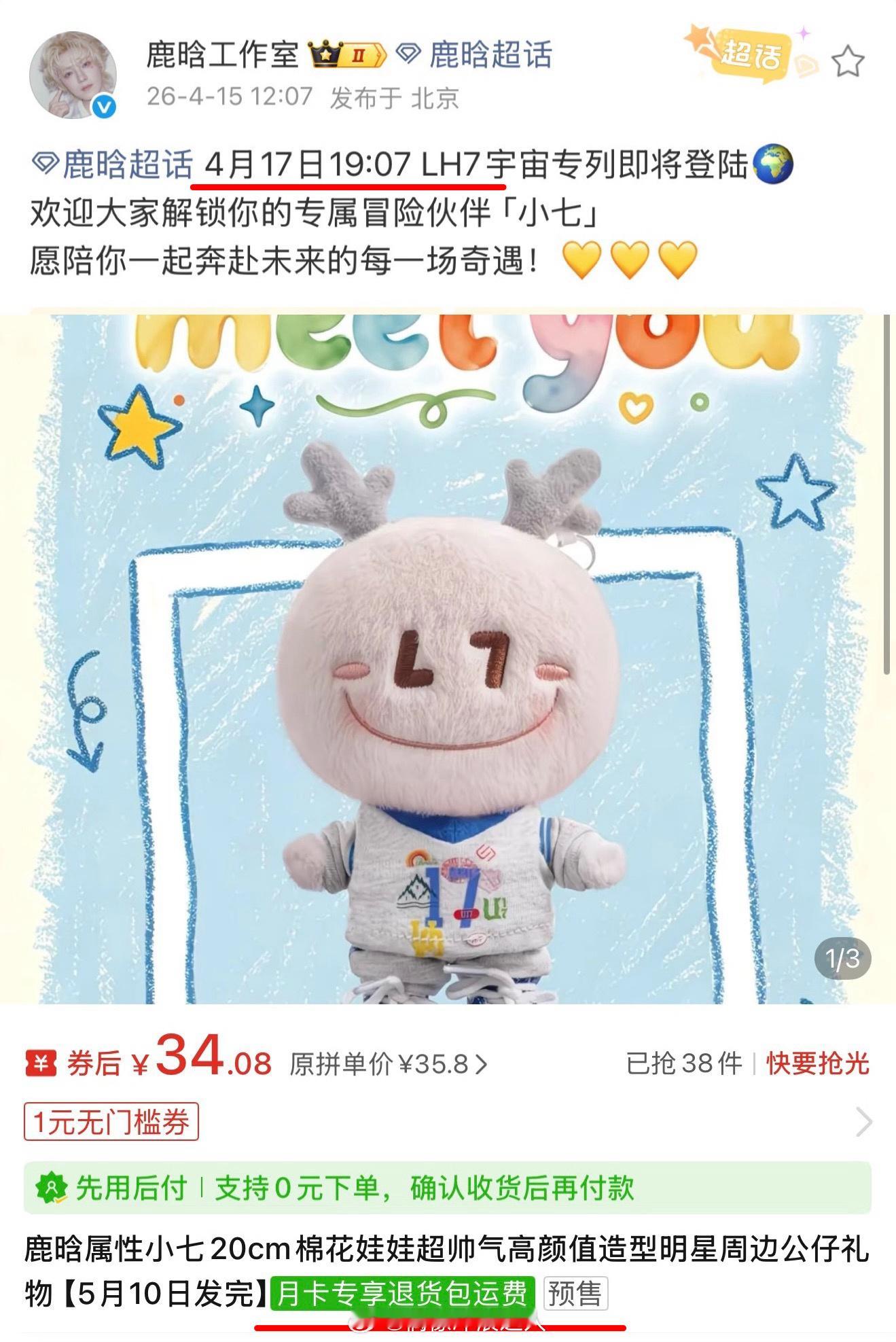 鹿晗工作室 躺平 小七娃娃正版的都还没开售,盗版的预售就开始了鹿晗工作室连商务也不转发…