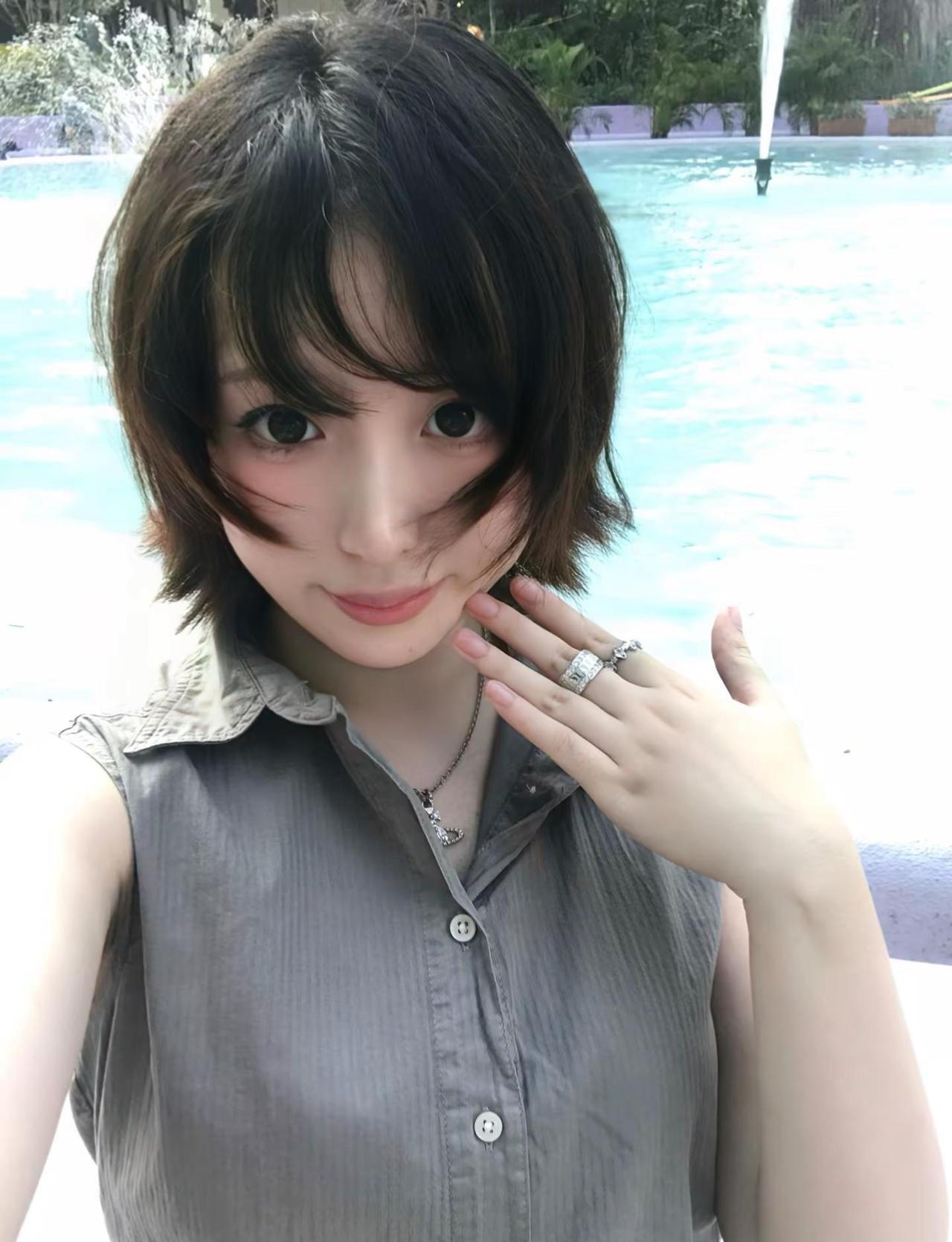 周冬雨短发好萌周冬雨的短发自带灵动气质,蓬松的发丝透着清爽,搭配浅笑时的模样
