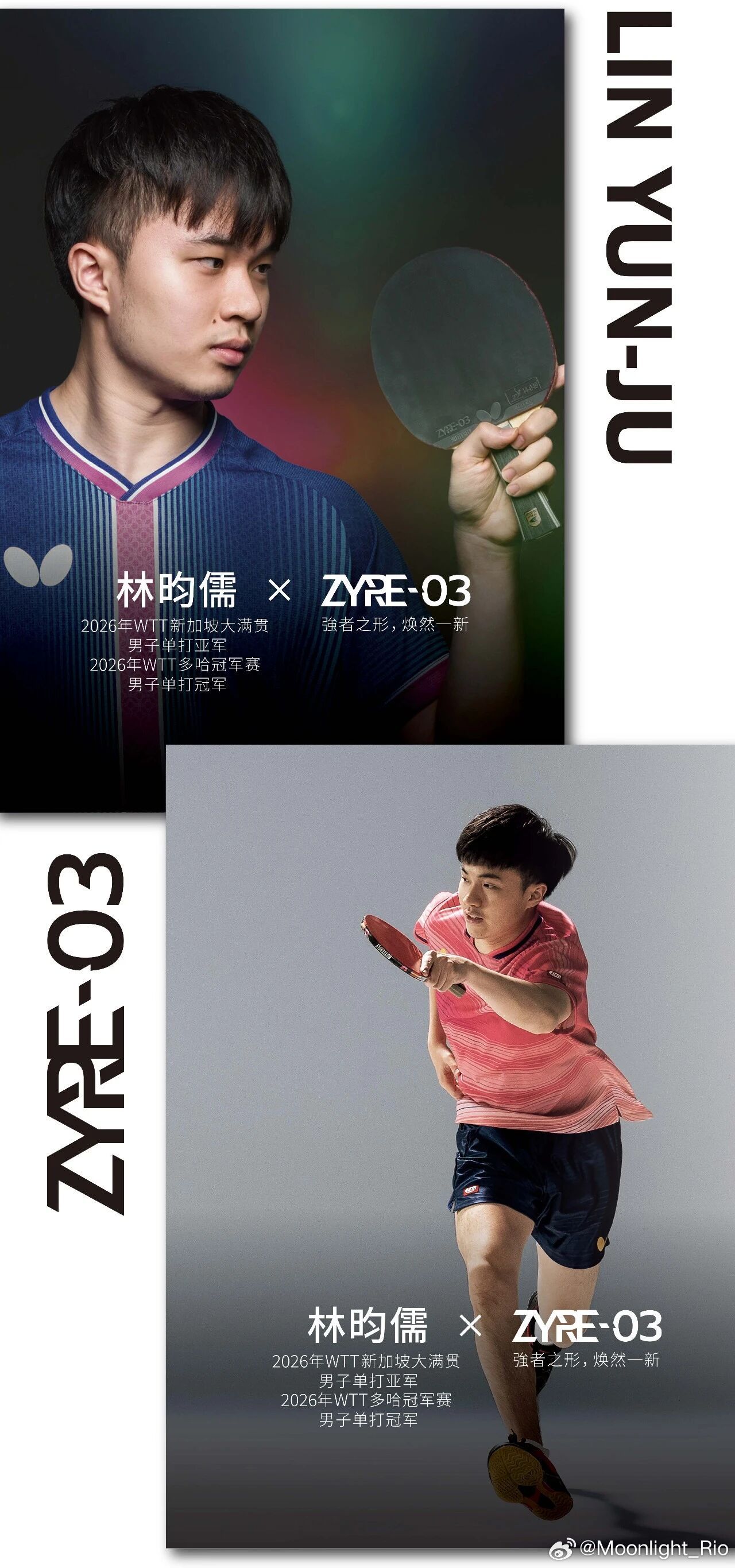 林昀儒 | ZYRE 03 器材专访:解锁选手的选择我之前一直用 TENERGY 05 HARD,打了很多年。这么多年打球,我的打法也一直在调整,最终选择正手改用 ZYRE 03,因为它旋转更强,稳定性也更高。换上 ZYRE 03 之后,技术提升最明显的是反拉环节;另外,当对手回球旋转很强时,用 Z03 也能更轻松地回击过去。