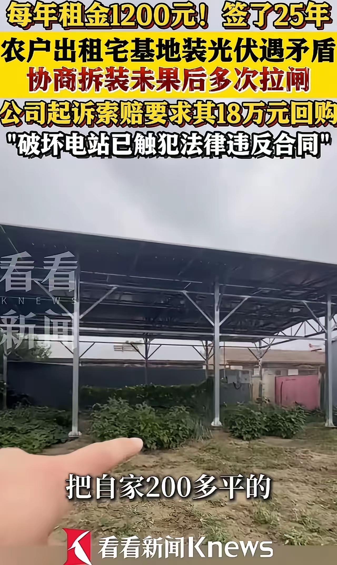 贪小便宜吃大亏!河北男子租地装光伏年入 1200,却赔了 18 万还被拘:全是套路! “我就想赚点零花钱,怎么就把家底都赔进去了?”河北廊坊的霍先生,此刻正对着法院的传票瑟瑟发抖。他怎么也想不通,自己不过是把家里闲置的 200 多平宅基地租出去,想着每年能躺赚 1200 元,25 年下来也有 3 万块收入,结果钱还没捂热,反倒背上了 18 万元的巨额债务,甚至稀里糊涂地被拘留了 10 天!这哪里是天上掉馅饼,分明是精心设计的“杀猪盘”! 事情要追溯到 2024 年 9 月。那天,几名自称某新能源公司的工作人员突然造访,围着霍先生家的空地转了好几圈,嘴皮子翻得比计算器还快。“大哥,你这地空着也是浪费,租给我们装光伏吧!不用你掏一分钱,也不用你操心维护,每年固定给你 1200 块租金,一签就是 25 年,稳稳当当赚 3 万!” 霍先生是个老实巴交的庄稼人,心想地反正是闲着,还能多笔收入,何乐而不为?在对方热情的攻势下,他没细看那些密密麻麻如天书般的条款,便大笔一挥签下了《光伏项目屋顶租赁协议》。他根本不知道,这家所谓的“新能源公司”,其实只是某大品牌光伏在当地的合作运营商,说白了就是个负责“跑马圈地”的中间商。 一个月后,蓝汪汪的光伏板整齐地铺满了霍先生的宅基地,看着确实气派。霍先生心里美滋滋的,觉得自己发现了致富新路径。然而,好日子没过几天,邻居韩先生就黑着脸找上门了:“我家墙凭什么让你们走线?万一漏电着火怎么办?赶紧拆了!”原来,施工队在安装时,为了图省事,未经邻居同意直接将线路穿过了韩先生的后墙。 一边是邻居的强烈抗议和安全隐患,一边是自家未来可能要翻建房屋的需求,霍先生急得像热锅上的蚂蚁。他多次致电公司,要求暂时拆除设备,等协商好线路或自家盖房时再重装,并强调:“当初你们承诺过,如果我要翻新房子,你们得承担拆装费用!”可电话那头的回应永远是冰冷的“正在反映”、“再等等”。从 2024 年底到 2025 年 4 月,霍先生打了无数个电话,要么无人接听,要么被敷衍了事,当初热情的售后人员甚至直接声称“已辞职,与我无关”。 被逼无奈的霍先生,想出了一个最笨的办法——拉闸停电。他天真地以为,只要电站停了,公司总得派人来协商吧?殊不知,这一举动直接将他推向了深渊。新能源公司不仅没有露面解决问题,反而直接报警,指控霍先生“故意破坏电力设备”。尽管警方初期倾向于调解,认为未造成实质损坏,但公司态度极其强硬,坚决不松口。 2025 年 10 月,噩耗传来:霍先生被处以 10 天行政拘留。紧接着,合敏新能源公司将他告上法庭,索要高达 18.2 万元的电站回购款,加上电费损失、维修费等,总计近 19 万元!公司的理由简单而冷酷:合同白纸黑字写着,农户不得拉闸、不得触碰设备,一旦违约,需按公司定价回购全套设备。 直到此时,霍先生才静下心来仔细研读那份当初看都没看的协议。越看越心惊:合同中全是约束农户的严苛条款,而对于公司不履行拆装义务、售后服务缺失等问题却只字未提。最坑人的便是那个隐藏的“回购陷阱”——签约时无人告知,一旦违约,赔偿金额竟是设备高昂的“自定价”,而非市场价。对于年均收益仅 1200 元的霍先生来说,这简直是天文数字。 此事曝光后,瞬间引爆网络。网友们纷纷惊呼:“这就是典型的农村光伏骗局!”有人揭露,很多村干部为了提成,忽悠老人在不知情的情况下签字,合同里暗藏无数霸王条款;也有人质疑,地球这么大,太阳能到处都有,为何偏偏盯着你家那点宅基地?这里面若无猫腻,谁信?更有网友痛心疾首地指出:“很多老人一辈子积蓄就这样被‘做局’骗光了,欺负的就是他们不懂法、看不清合同!” 霍先生的遭遇给所有人敲响了警钟:天下没有免费的午餐,更没有稳赚不赔的买卖。在面对“零投入、高回报”的诱惑时,千万要擦亮双眼,仔细审视合同中的每一个字,尤其是违约责任条款。切莫因贪图眼前的小利,而陷入无法挽回的巨大亏损之中。农村光伏本是好政策,但若被不良商家利用,成了收割农民血汗钱的镰刀,那才是最大的悲哀!光伏收费标准 光伏设计价格