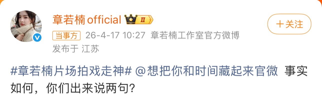 章若楠片场拍戏走神omg好刚这么刚的工作室替我心肝接了哈哈哈哈哈章若楠工作室喊话