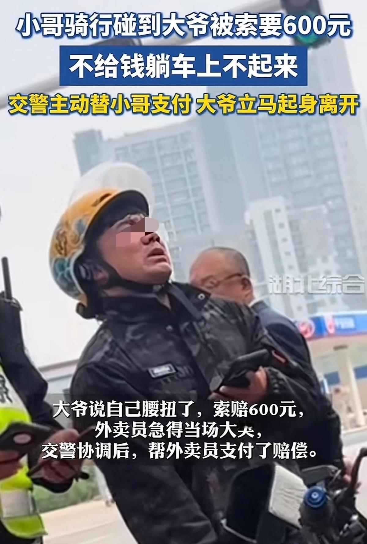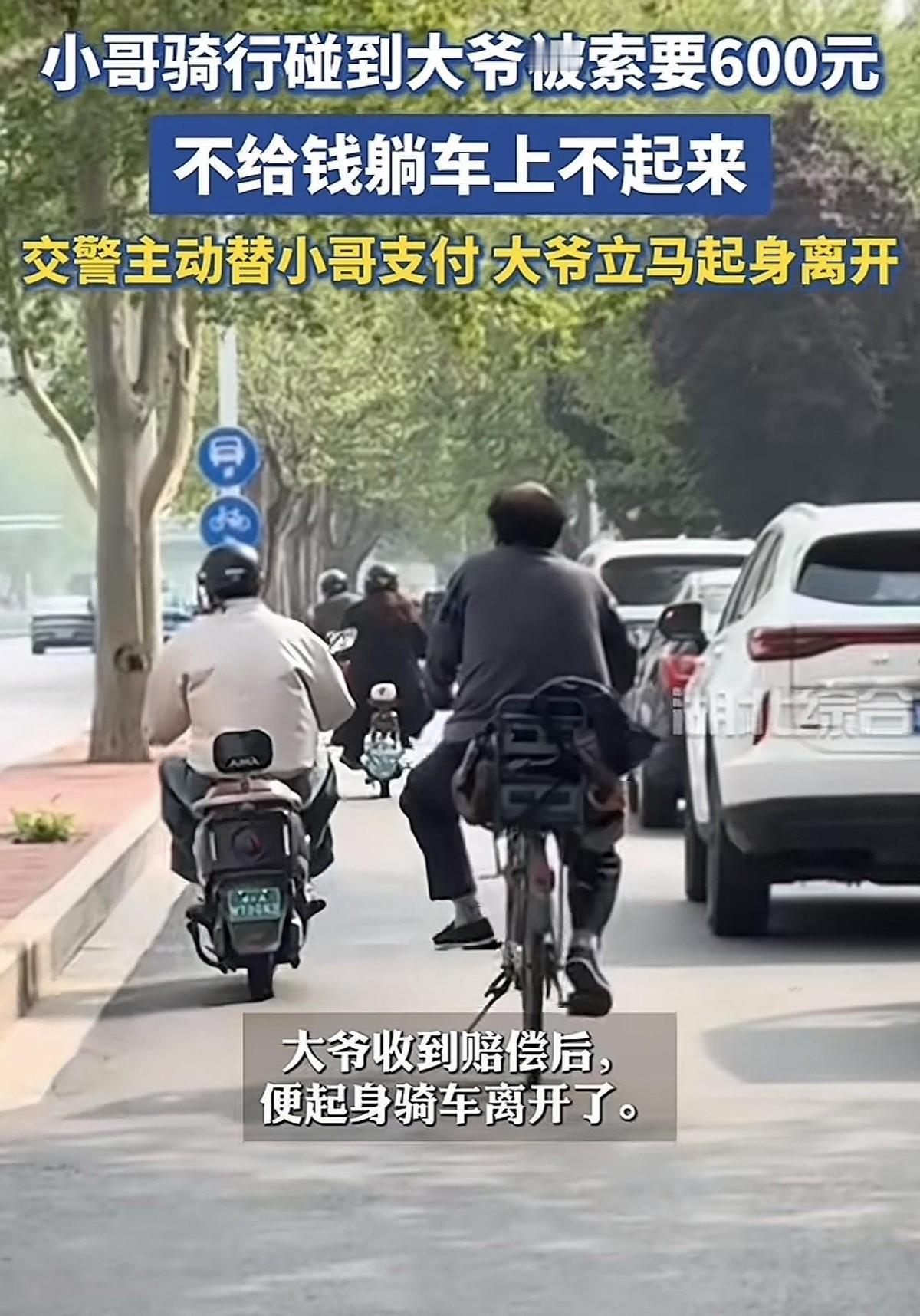 4月15日下午三点,河北某路口的空气仿佛凝固了。一个收款二维码,在阳光下显得格外刺眼,那是大爷开出的“和解条件”。 外卖小哥小李,此刻正经历着他职业生涯最灰暗的时刻。他原本只想在这波送餐高峰里多挣几十块钱。 可突如其来的小擦碰,让他的希望瞬间化为泡影。大爷那双长满老茧的手,死死拽着电动车的后架,仿佛拽着小李的命脉。 “腰折了,赔600,少一分都不行!”大爷的吼声在嘈杂的街头显得异常尖锐。 小李站在烈日下,汗水混着泪水往下淌。他翻遍了所有的口袋,只有几十块零钱。 那种在众目睽睽之下被生活逼入死角的无力感,足以压垮一个成年人所有的尊严。小李当众放声大哭,那是积压了太久委屈的爆发。 围观人群越聚越多,有人叹息,有人愤怒。就在僵持不下的瞬间,一名执勤交警快步上前,拨开了人群。 这里的气压低得让人喘不过气。交警看了一眼哭得全身颤抖的小李,又看了看躺在车上寸步不让的大爷。 没有长篇大论的调解,也没有僵硬的公事公办。他掏出自己的手机,对着大爷那张收款二维码,果断点击了确认。 600元,整整600元,这对于一个月薪几千的普通交警来说,绝不是一笔小数目。 可戏剧性的一幕紧接着就发生了,大爷的动作快得像个运动员。听到手机里传出“到账”的提示音,他瞬间从车上弹了起来。 刚才还喊着“腰断了”的老汉,此时身手矫健得判若两人。他甚至连一个眼神都没留给那个帮他付钱的人。 拍拍裤腿上的泥巴,大爷骑上自行车,头也不回地消失在车流里。这种极致的利益追逐,让现场所有人都陷入了死一般的寂静。 咱们话说回来,这事儿真的能就这么算了吗?根据我国《民法典》第一千一百六十五条规定,行为人因过错侵害他人民事权益,应当承担侵权责任。 可大爷这种“秒痊愈”的行为,摆明了就是在挑战法律的底线。如果根本没受伤却索要巨额赔偿,这性质就变了。 这已经不属于简单的交通事故处理范畴。这种行为极可能涉嫌敲诈勒索,是对公共诚信的公然践踏。 交警的钱,那是自掏腰包的“仁义”,是对弱势群体的呵护。但如果善良总被用来给卑劣买单,谁还敢行善? 这种“花钱了事”的解决方式,虽然缓解了眼前的矛盾,却可能埋下更深的隐患。它无意中向外界传递了一个错误信号:碰瓷,是真的能赚到钱的。 小李想加交警微信把钱还上,被婉言拒绝了。这位交警留给世界的,是一个继续执勤的背影。 这种温情当然值得点赞,但我们更希望看到的,是执法记录仪下公正的判决。让讹人者付出代价,远比让善良者替其买单更有意义。 法治的温度,不应该通过消耗执法者的钱包来体现。愿每一个在大城市打拼的小李,都能被法律温柔以待。 也愿那些自以为聪明的大爷,明白有些钱拿着是会烫手的。正义或许会迟到,但绝不该以牺牲正直为代价。