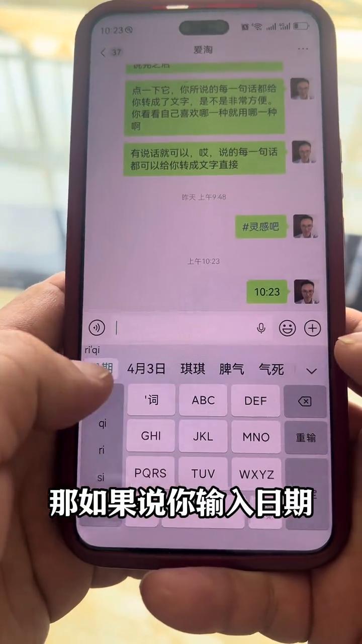 你的手机能直接打出时间吗? 你的手机可以直接打出时间来吗?我估计屏幕前90%以上的朋友都不知道时间是可以直接打出来的,就是不用输入几分几秒也能打出来。 ·比如直接给朋友发送时间,输入时间就行,这个地方自动的会弹出时间来,自动的发送给对方,是不是非常方便? ·当然有的是在这个位置弹出来时间,也是一样可以发送的。 ·如果输入日期,这里会弹出4月3号,今天就4月3号,直接发给对方。 这两个操作是非常方便的,看看你的手机能不能发出这样的时间和日期。
