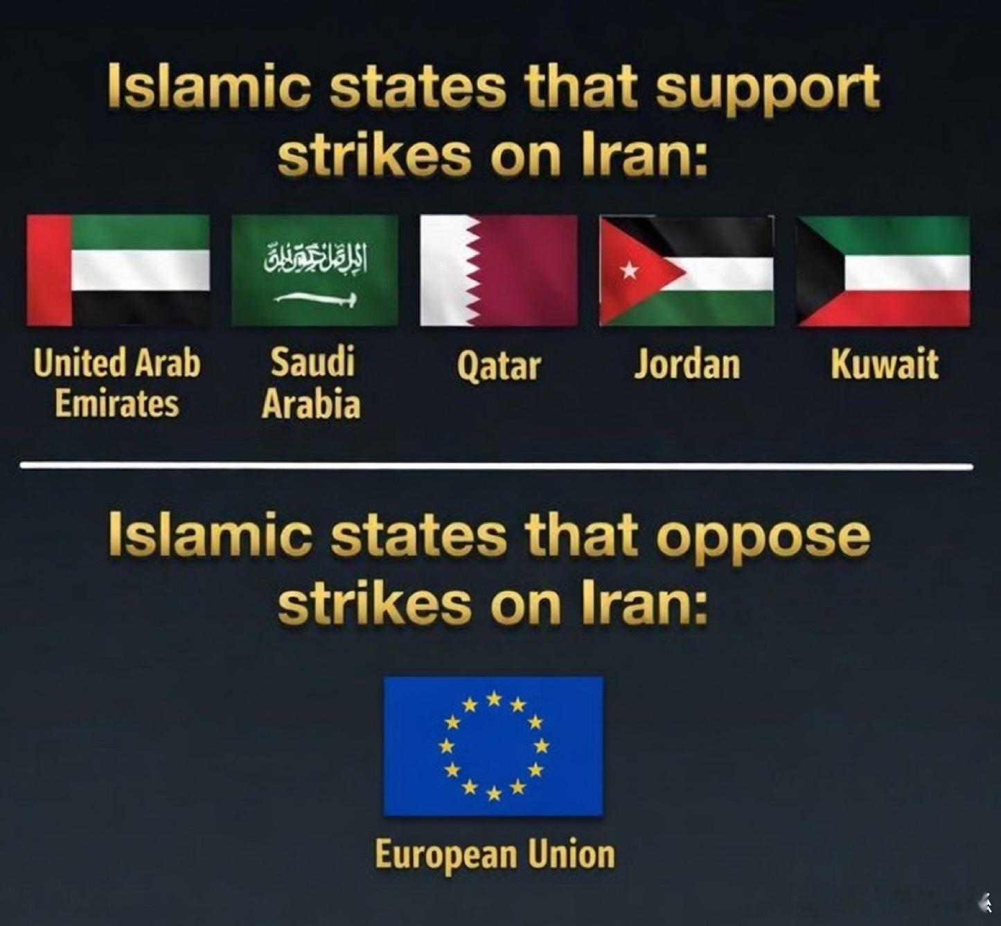 海灣國家支持打擊伊朗,與之相反的是歐盟和梵蒂岡。