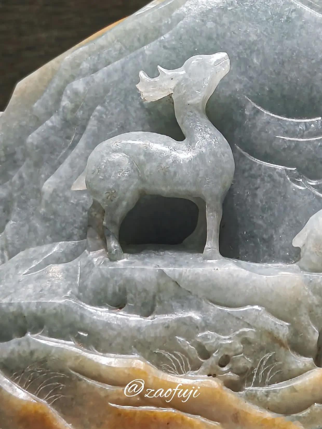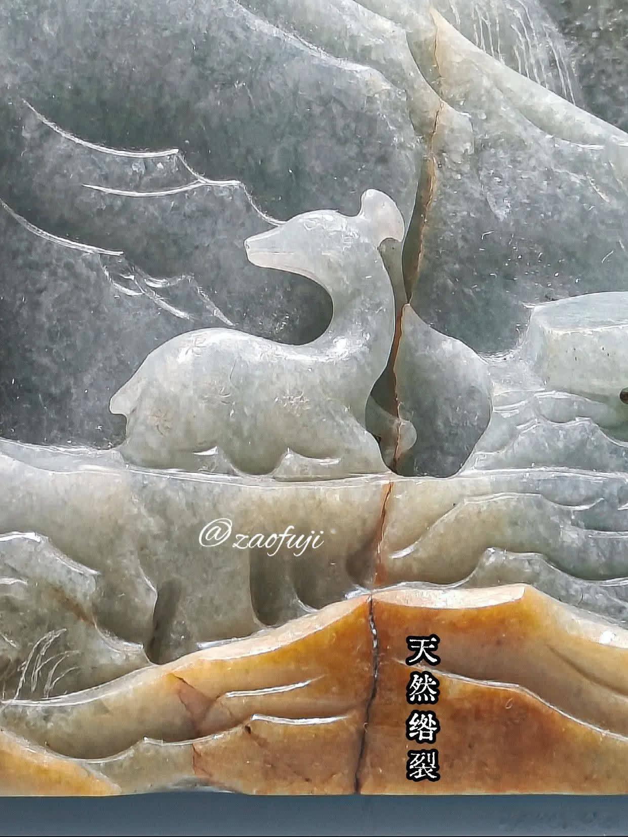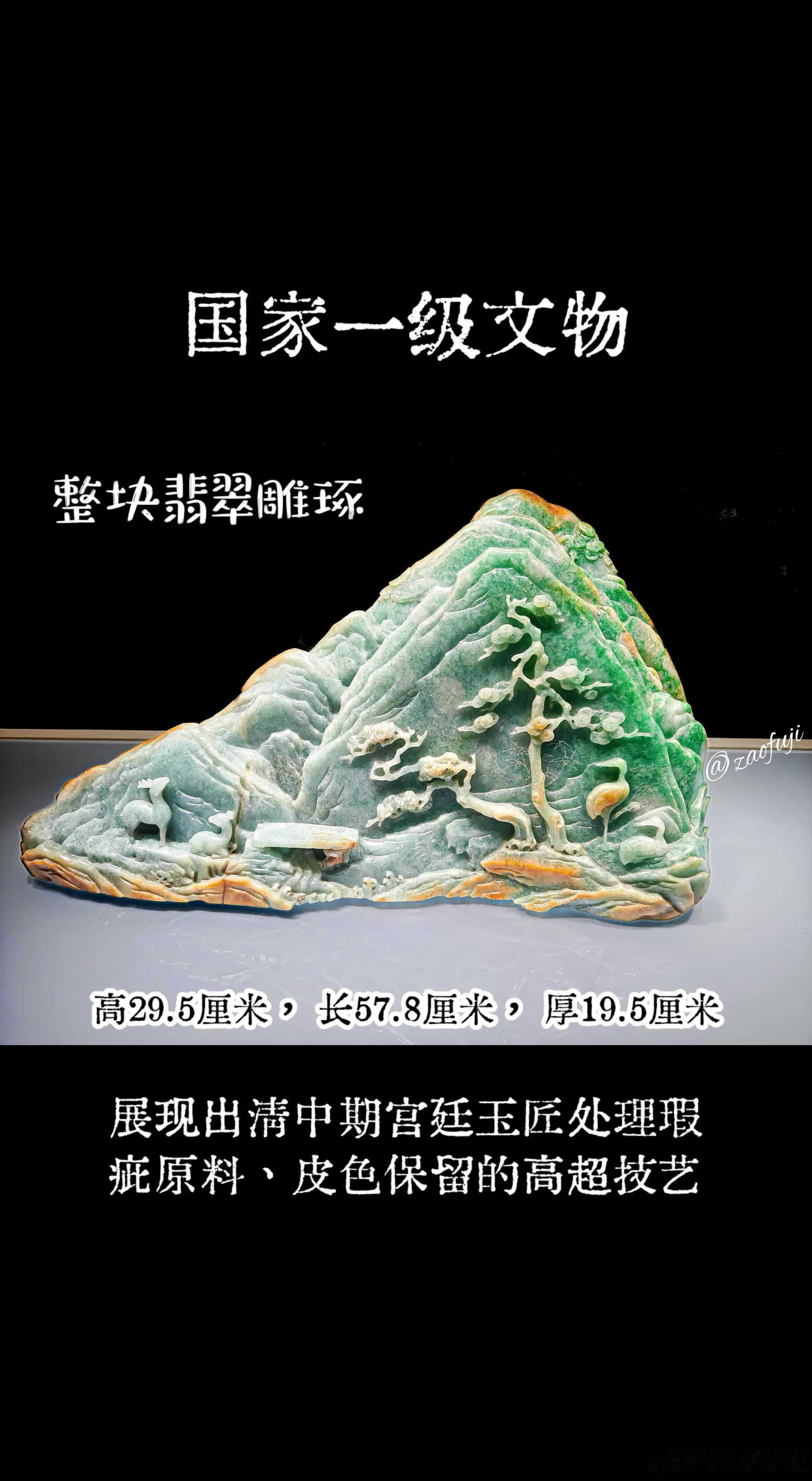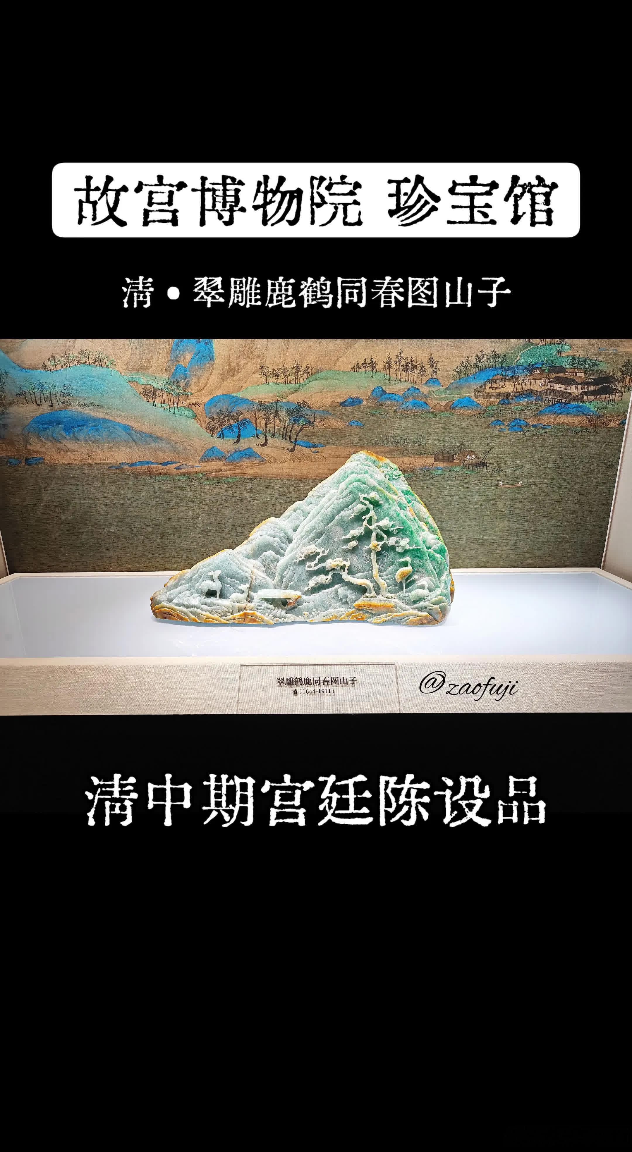 故宫博物院藏【清中期•翠雕鹿鹤同春图山子】,清代中期宫廷陈设品,国家一级文物,作