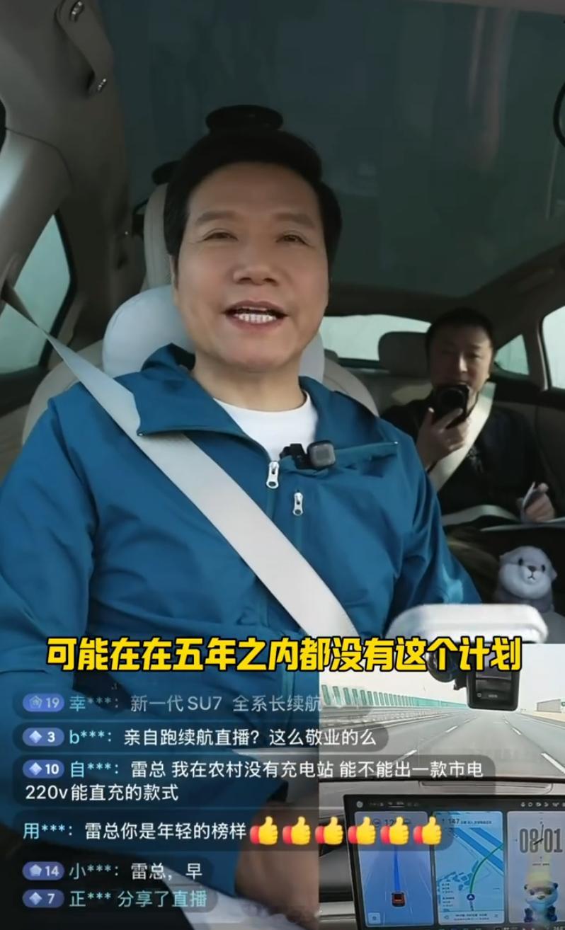 雷总直播明确回复,最近十年不会做 10 万以内的车。