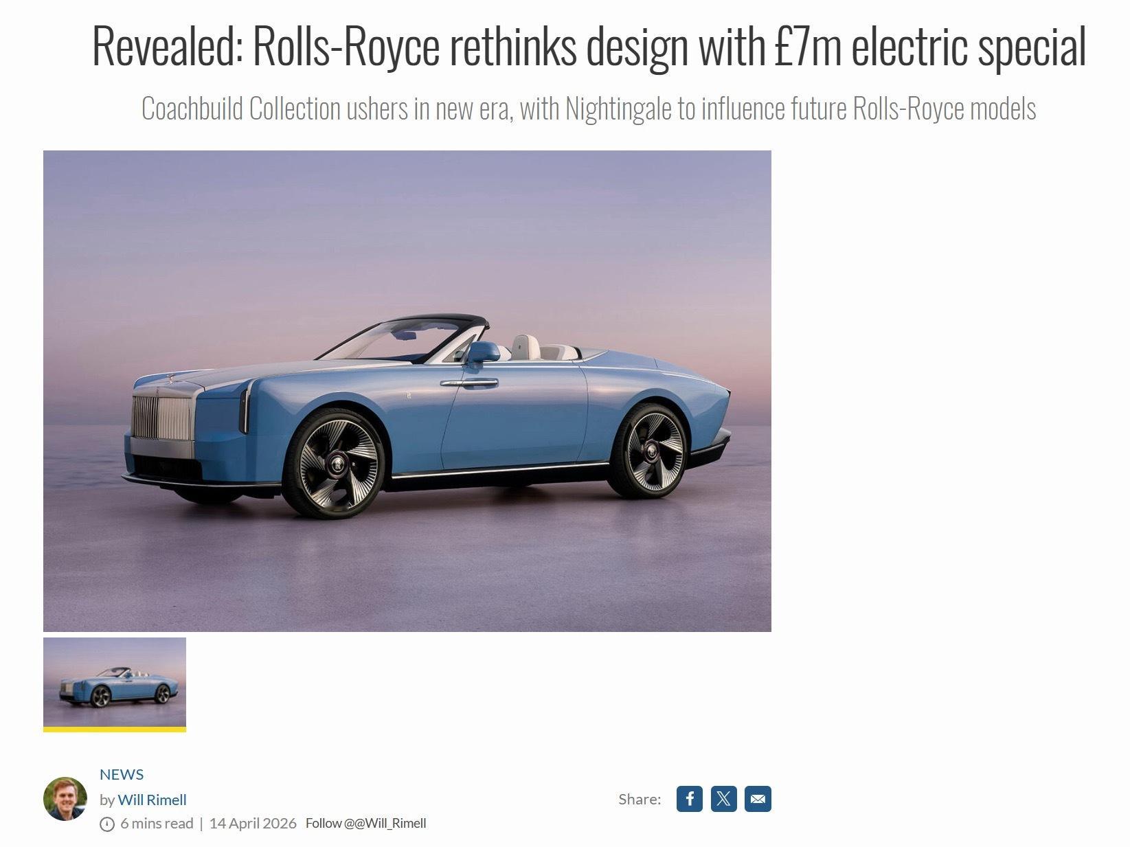 查清楚了,网上所有关于“劳斯莱斯夜莺价值700万英镑/900万美元”的消息,都源自于Autocar这位新编辑Will Rimell。
