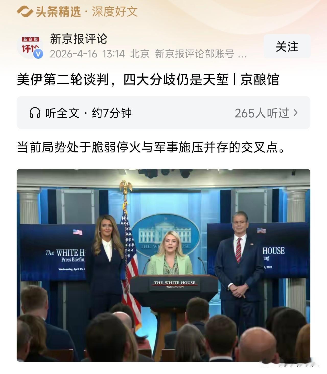美伊第二轮谈判难有实质突破,四大分歧谈不拢。 4月15日,巴基斯坦代表团抵德黑兰,传递美方信息,敲定伊斯兰堡第二轮谈判。两边都不让步,这谈判能成吗? 美伊现在就是脆弱停火,一边谈一边重兵压着。 核问题是最大死结:美国要伊朗永久弃核、拆设施、无限期核查。 伊朗只肯有限协商,坚持保留和平核活动权利。 伊朗已经囤了不少高丰度浓缩铀,两边立场完全对不上。 霍尔木兹海峡更是红线。美国要国际自由通行、不许收费。 伊朗直接放话,海峡控制权绝不谈判,收费必须用里亚尔。 按国际法,这海峡本就不该收费,但伊朗寸步不让,根本谈不拢。 制裁和资产也是大矛盾。美国只想小范围解冻、分阶段松绑。 伊朗要全面解除制裁,解冻1200亿资产,还要战争赔偿。 跟美国要赔偿,基本就是白说,两边诚意都有限。 美国还要求伊朗断了哈马斯、真主党这些地区盟友。 伊朗肯定不答应,这些盟友是伊朗在中东的重要依靠,丢了就彻底孤立。 现在最好结果,就是临时停火再延几周,解冻点小钱、伊朗暂停部分核活动。 但美军还在往中东增兵,航母、两栖舰都在赶来。 谈判更像在拖时间,为备战争取窗口。 一边说乐观,一边重兵集结,这戏码大家不眼熟吗?到底是真谈还是假谈,大家怎么看?