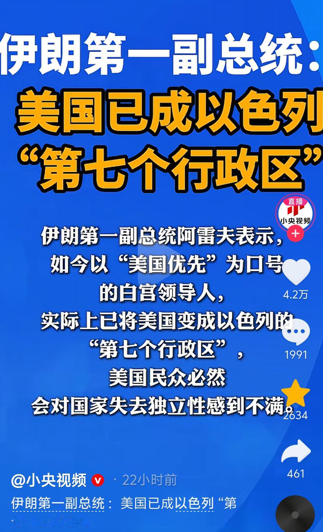 伊朗副总统一句话戳破美国底裤:你以为的超级大国,其实只是以色列的“第7个区”? “美国优先”喊得震天响,结果在伊朗人眼里,连独立主权都没了? 伊朗第一副总统阿雷夫直接把话挑明:现在的美国,早就不是什么独立国家,而是以色列的“第七个行政区”。 这话听着扎心,但细品全是现实:白宫的决策围着以色列转,钱跟着以色列花,连国际表态都得看以色列脸色。 嘴上喊着“美国优先”,实际上早就把国家主权卖得一干二净。难怪有人说,美国民众哪天醒过来,发现自己国家的外交权都不属于自己,不炸锅才怪。 你觉得,美国现在还有几分“独立性”?评论区聊聊你的看法。