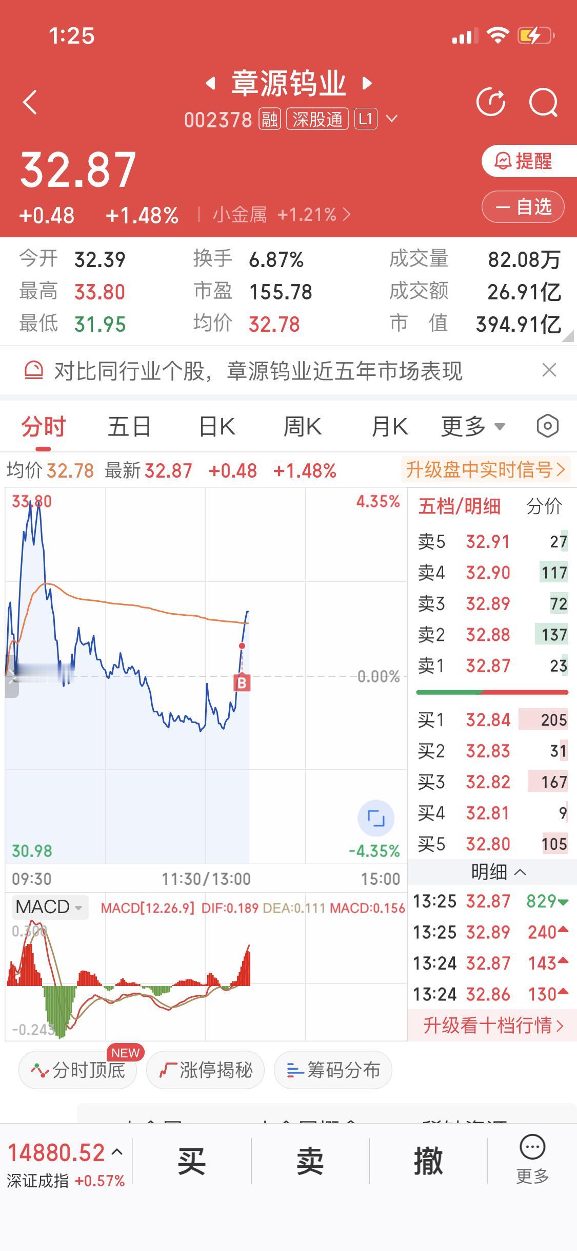 我也没拿住 惭愧惭愧 我卖了泰尔 重新买入章源钨业 泰尔震荡的过程太磨人了 每天不温不火 等他放量怎么在考虑进 小金属钨最近涨的挺好 资金看好 成交量放大