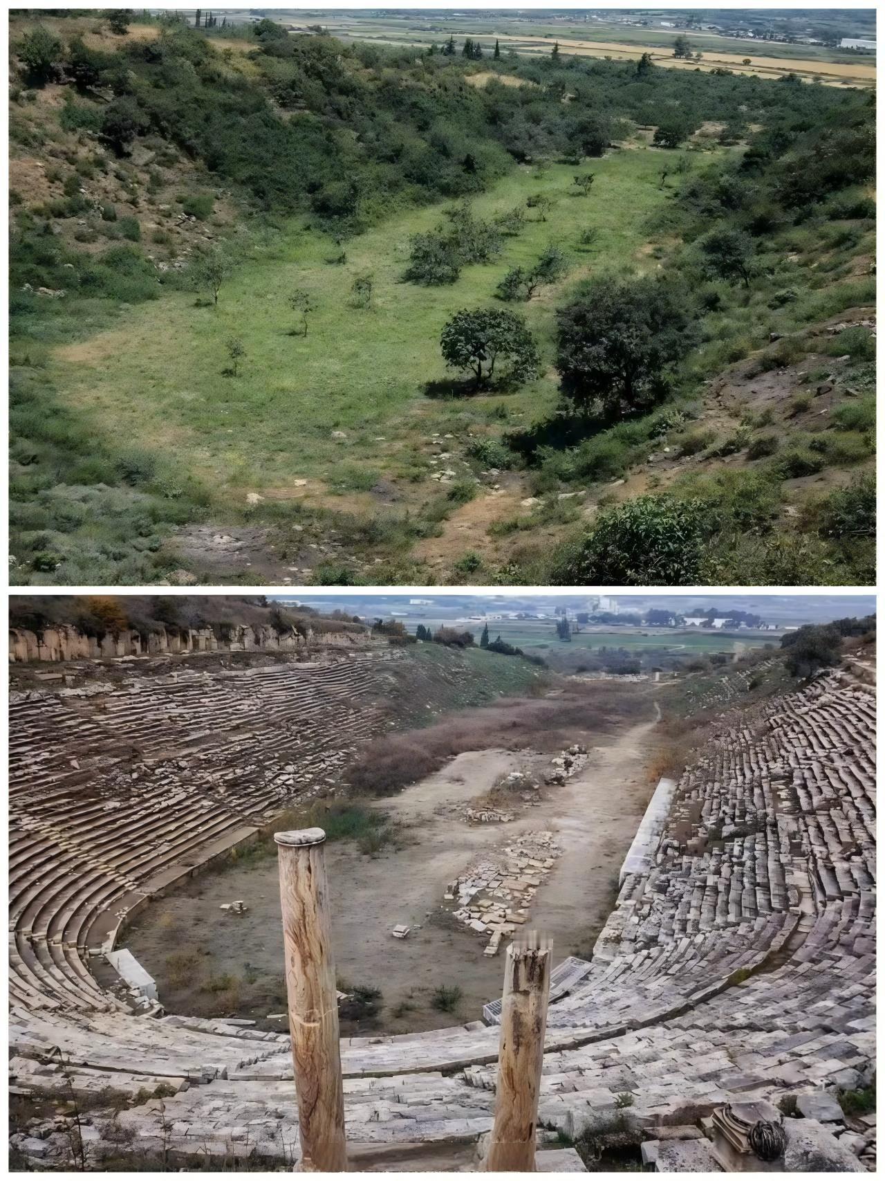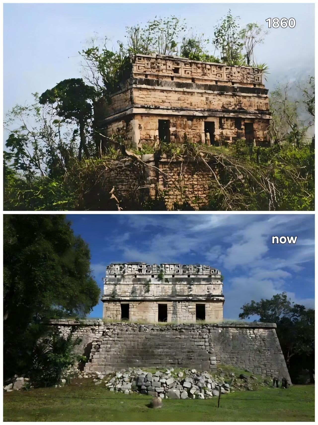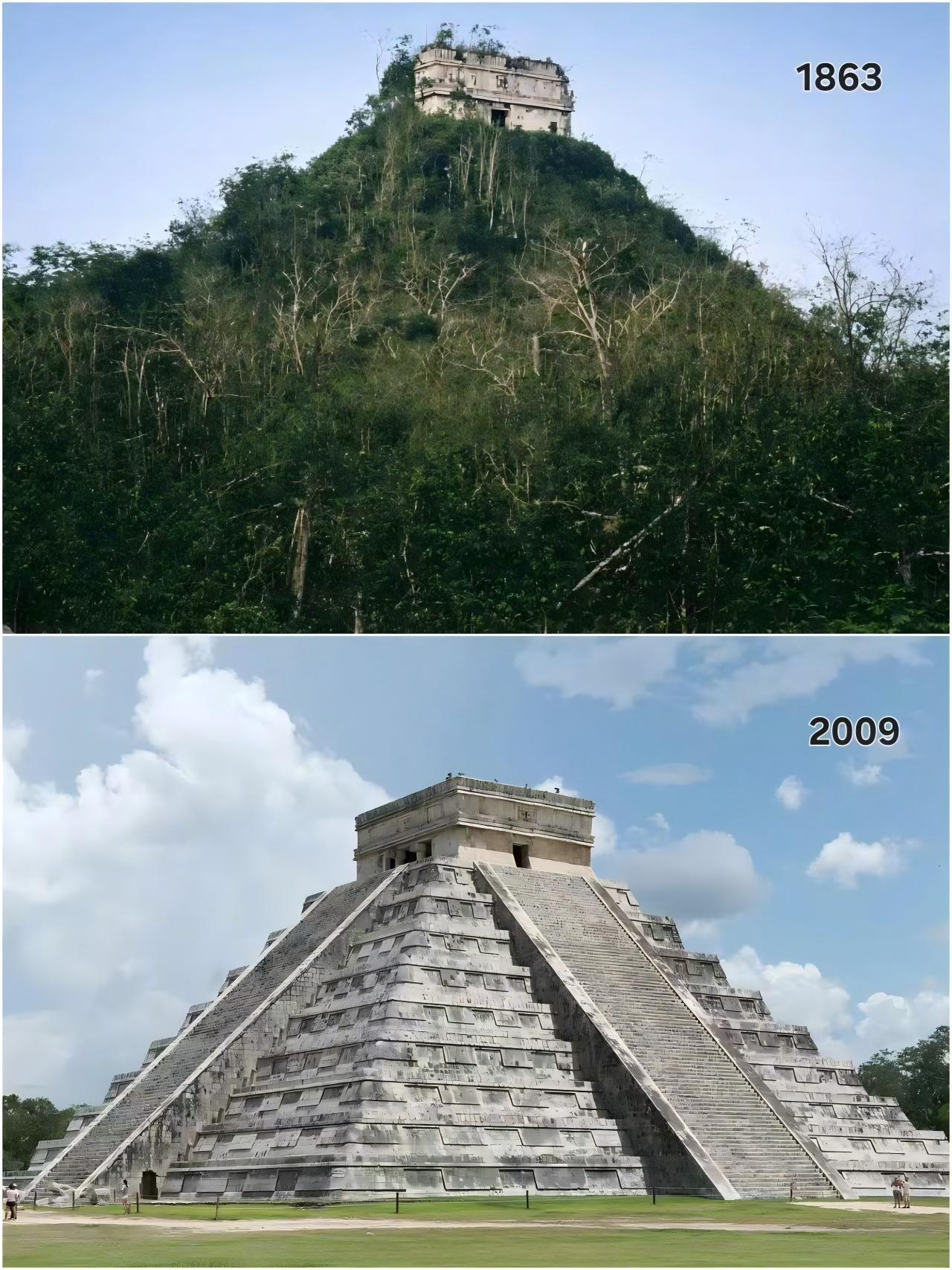 黄沙与荒草之下,原来藏着一整个文明的心跳。 这些跨越百年的对比图,像一把温柔的钥匙,打开了被时光掩埋的真相: 被黄沙半掩的狮身人面像,从 “只露一张脸” 到完整矗立; 被丛林吞噬的玛雅金字塔,从 “长满树木的土丘” 到展露神级建筑美学; 被岁月磨平轮廓的剧场,从 “普通山谷” 到重现千年前的辉煌回响。 考古学家们一铲一铲拂去尘埃,不是为了创造什么,而是为了让沉睡的文明,重新和这个世界打个招呼。
