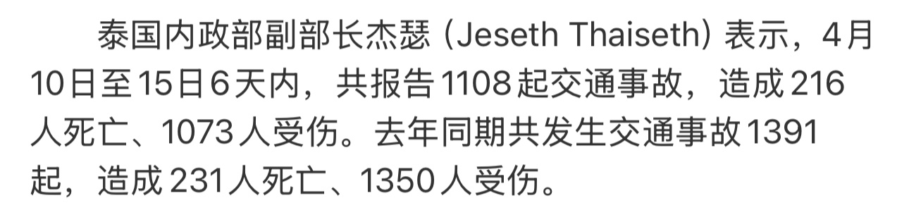 关键数据:→_→216人因交通事故死亡,较2025年下降6.5%→_→超速是最常见原因,其次是酒驾→_→摩托车涉及67.8%的交通事故