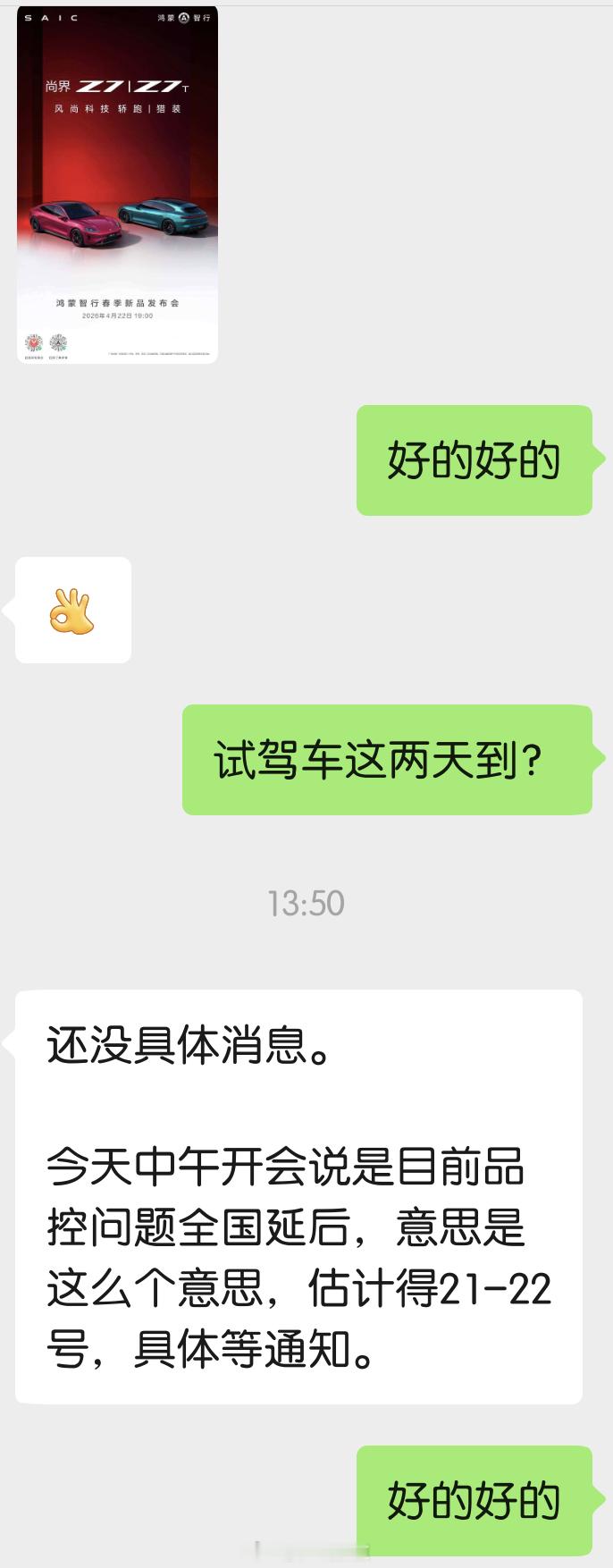 尚界应该是在抓品控,第一批车决不能出现品控问题,这么火的车型,如果第一批试驾车出品控问题确实对后续的销售会有很大影响,所以也理解
