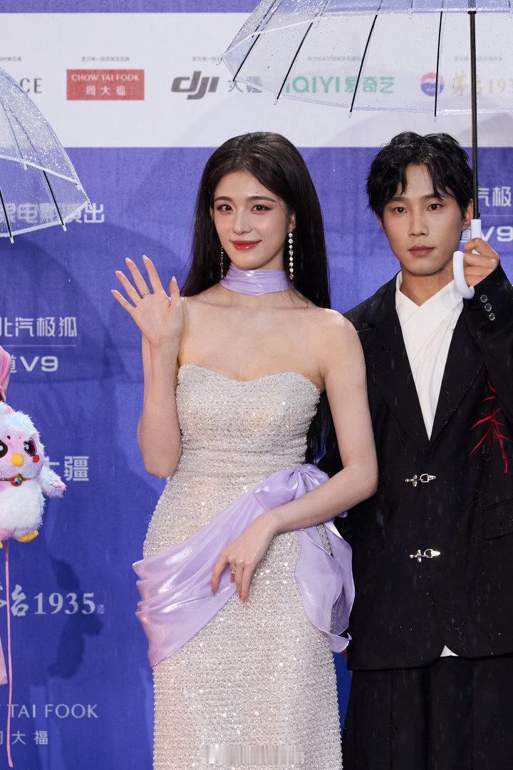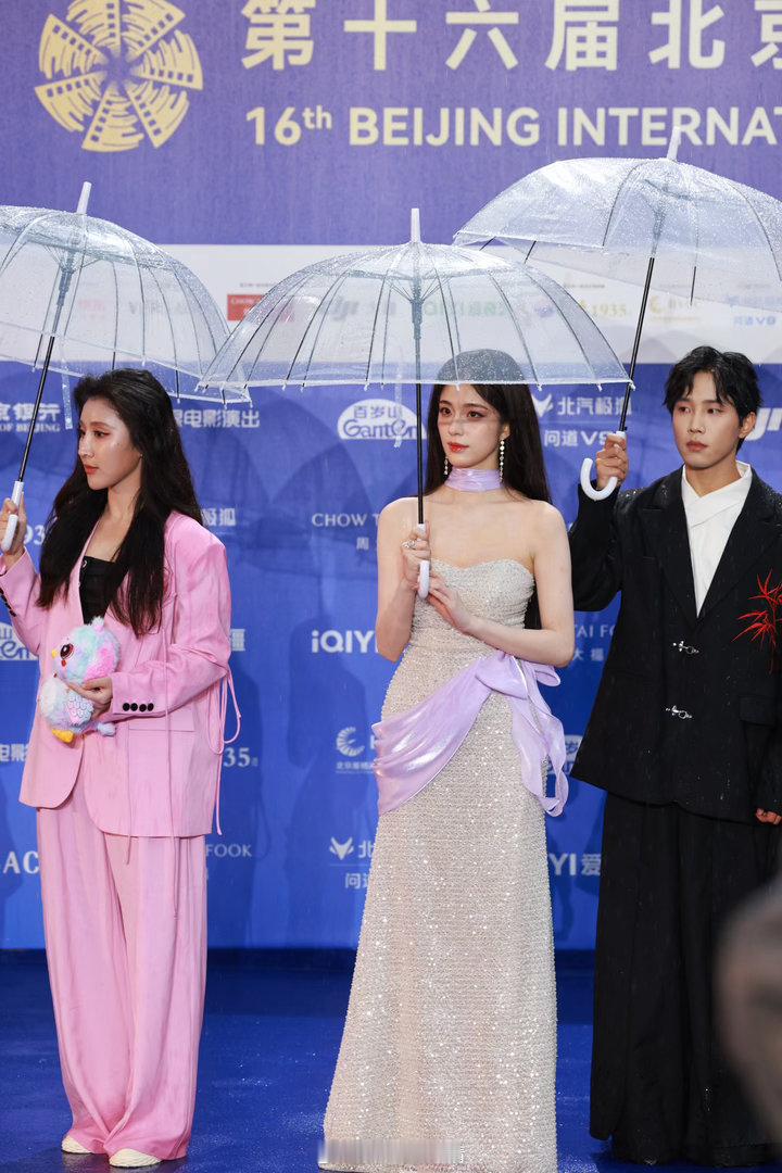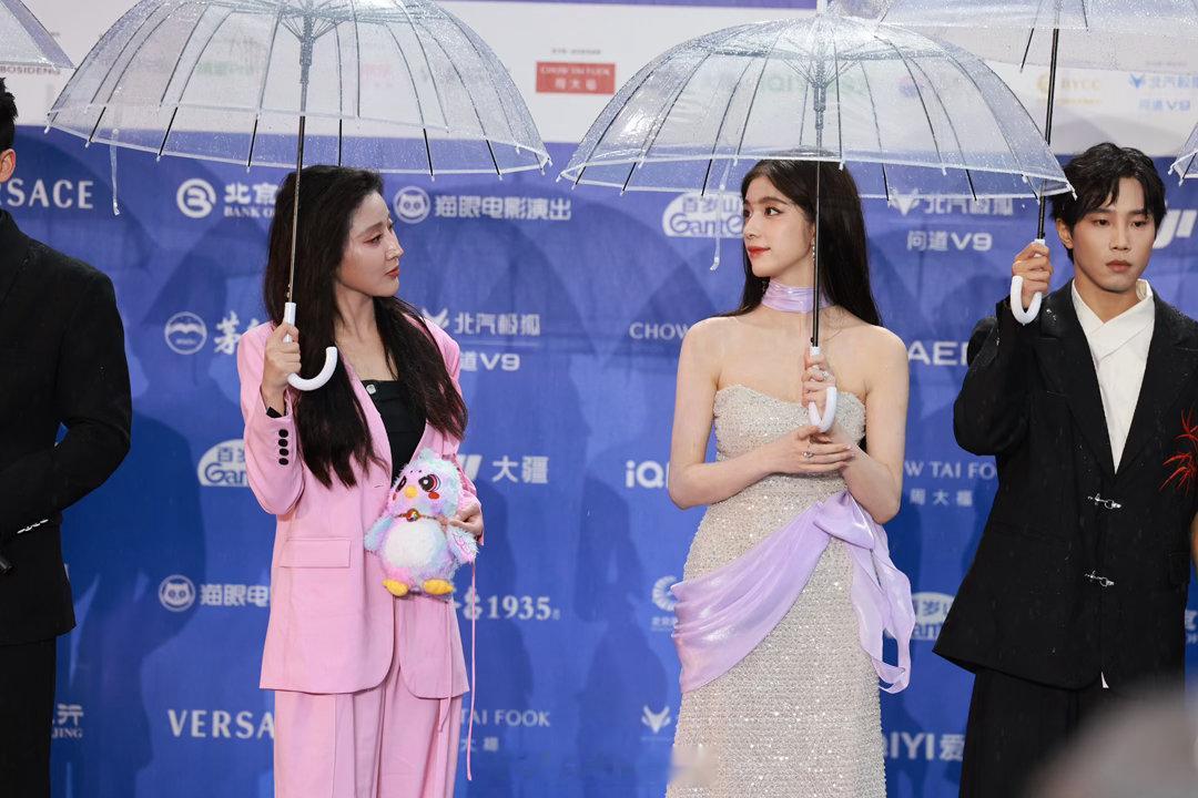 钟丽丽被雨淋了 红毯上被雨淋了还能笑着走完,说明心态确实好。不是那种假笑,是真的没当回事。雨滴顺着脸往下流,她就用手挡一下,继续走。这种松弛感,不是每个人都有的。钟丽丽红毯被淋了