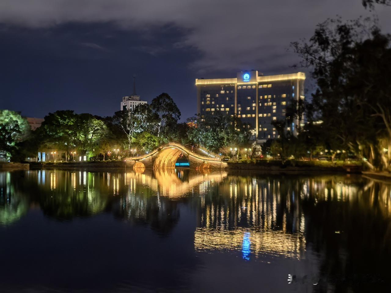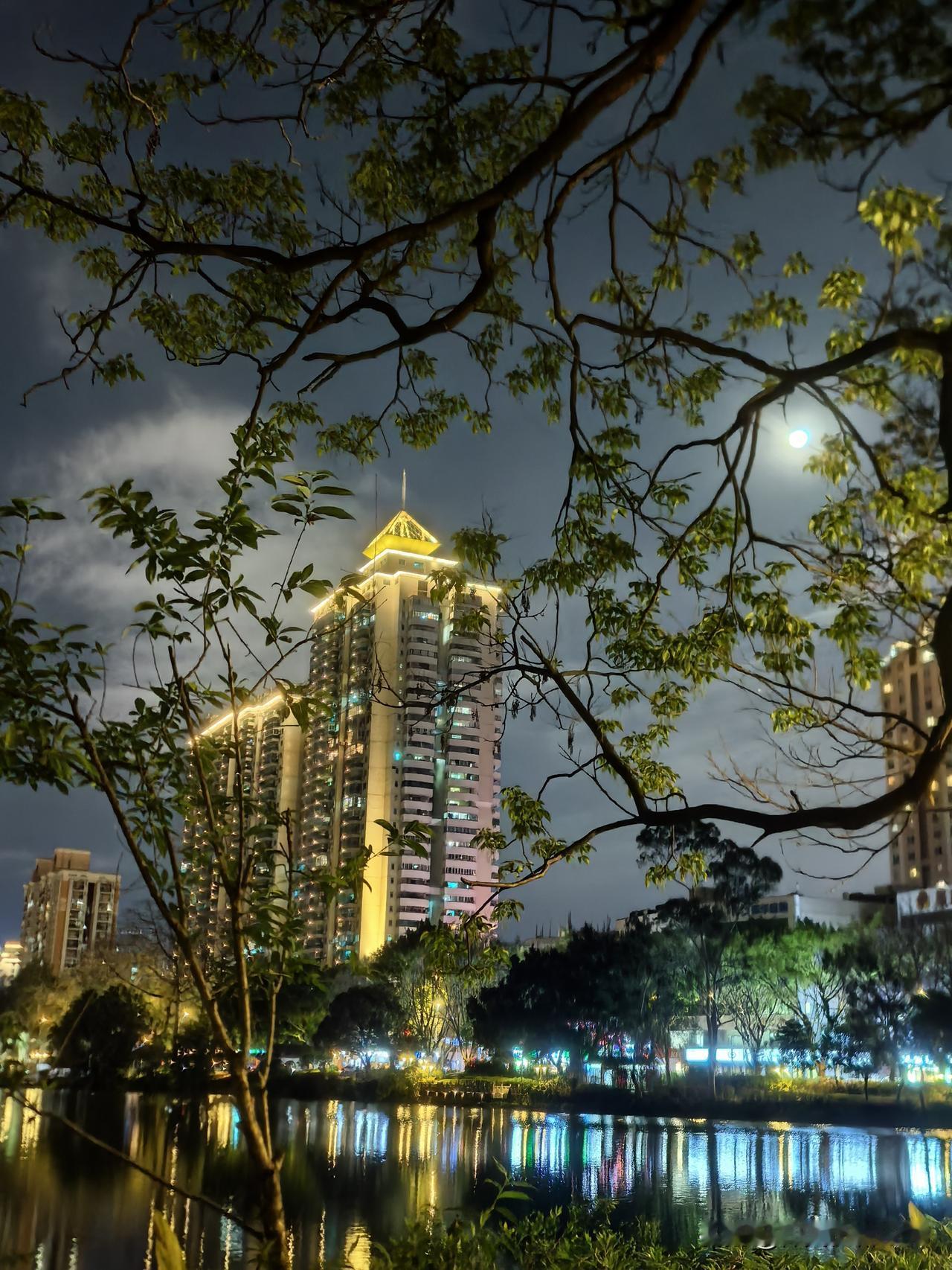 圆月如盘,夜色清寒。初春之夜,漫步福州西湖公园,夜景幽静柔美,别有一番韵味。