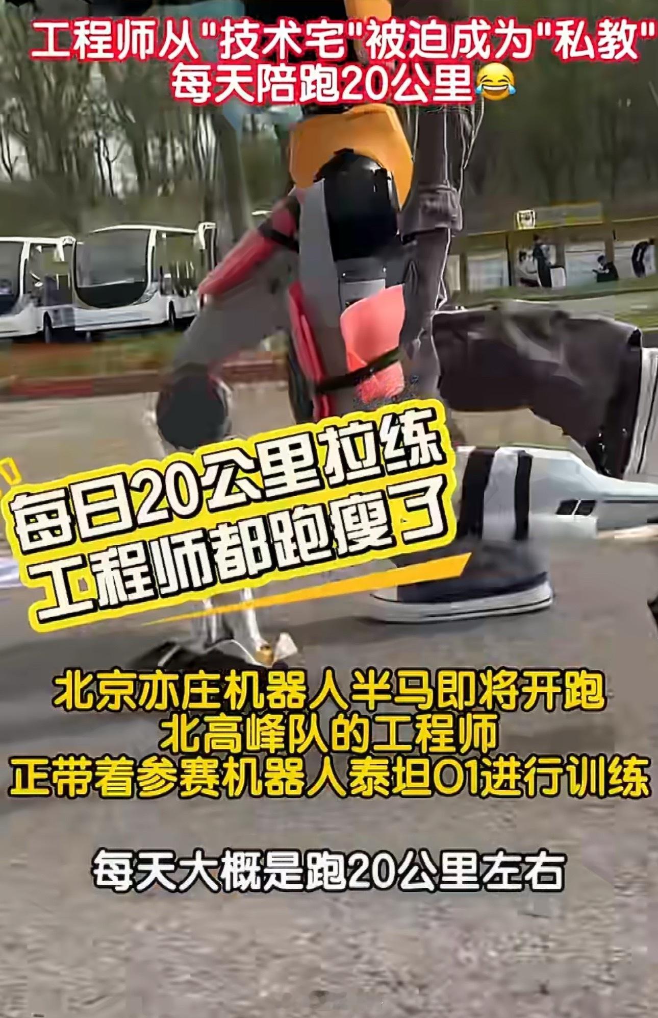 工程师为机器人陪跑累到腿软好家伙,工程师陪着机器人跑,那是机器,工程师可是人呀工