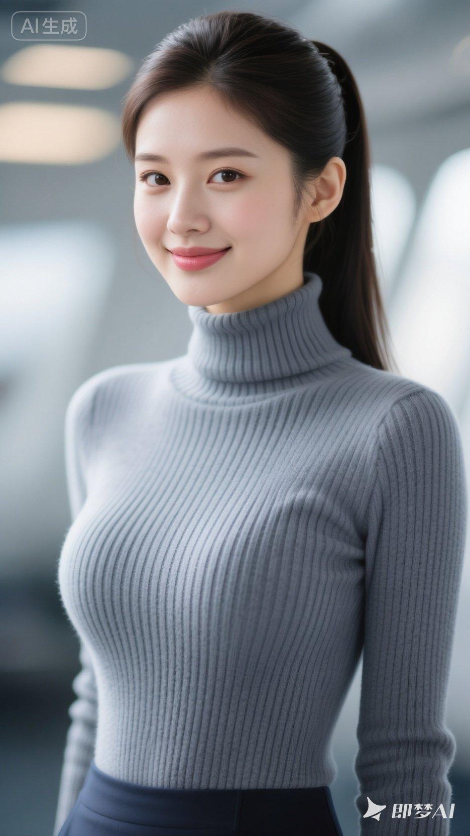 温柔甜美的微笑,米色高领毛衣,元气满满的一天!😊✨