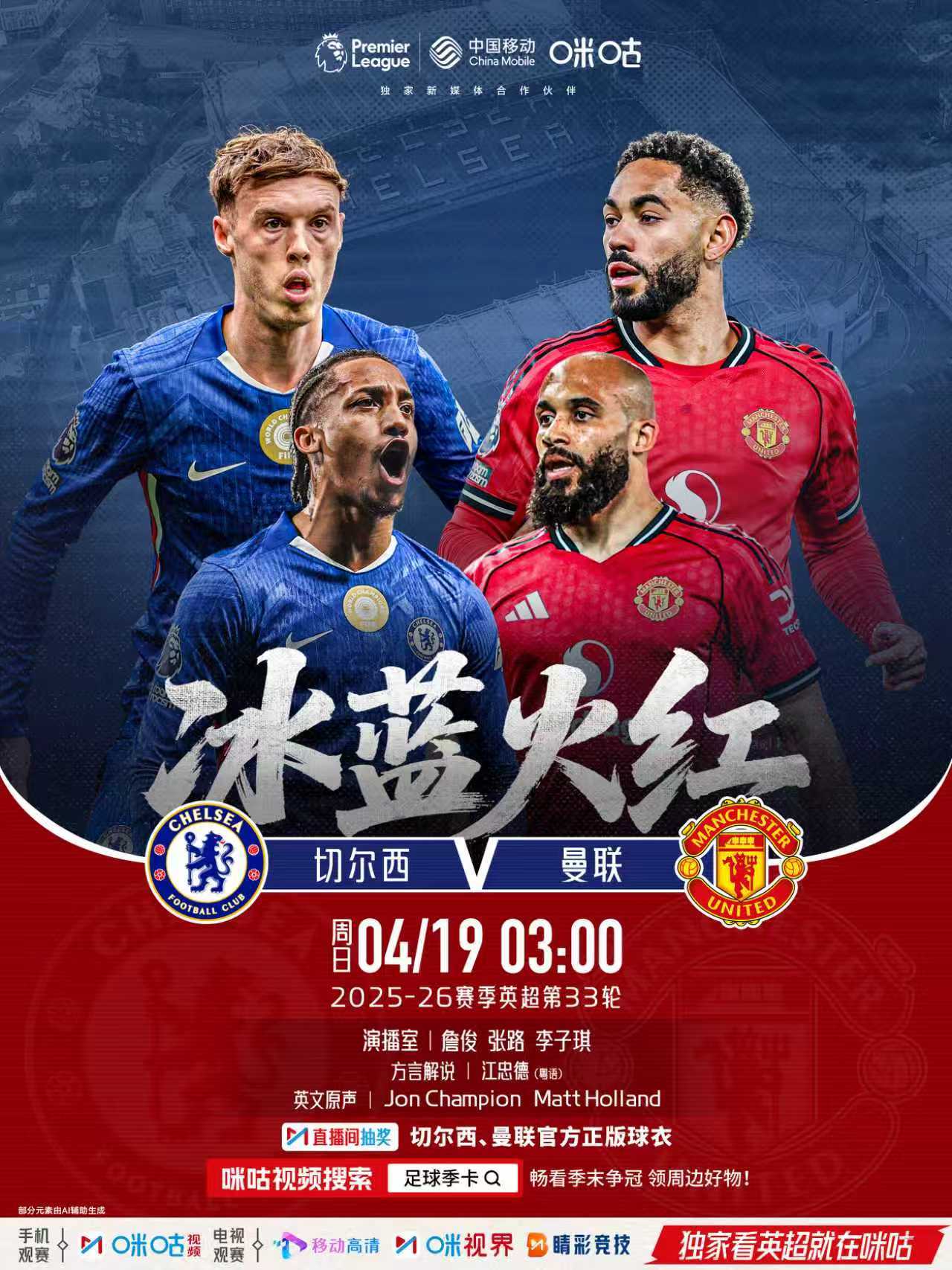 𝗣𝗿𝗲𝗺𝗶𝗲𝗿 𝗟𝗲𝗮𝗴𝘂𝗲🔵 切尔西 𝙫𝙨 曼联 👹📺 《冰蓝火红》🔒 4月19日 3:00 周日#切尔西vs曼联##独家看英超就在咪咕#📲网页链接